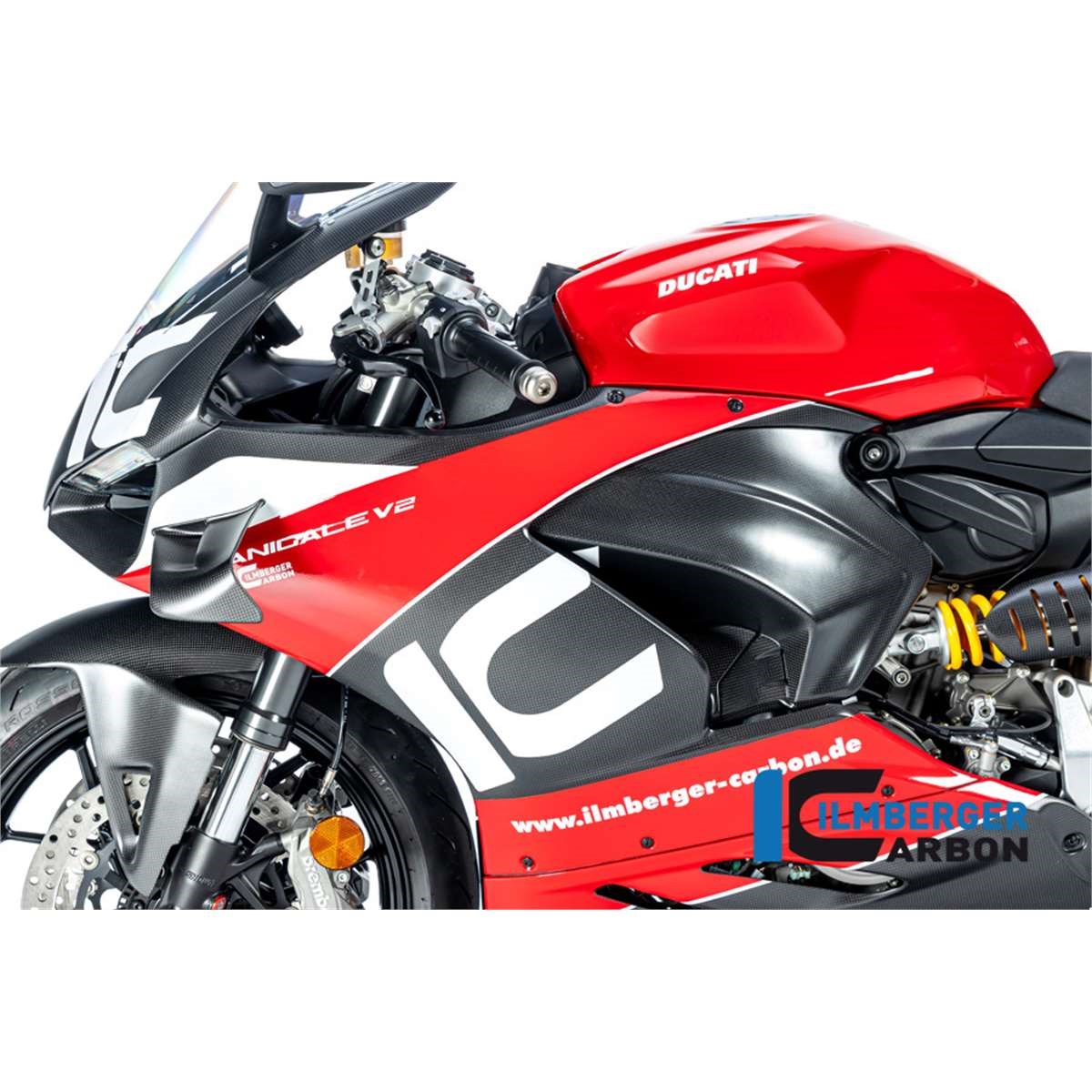 Das Verkleidungsseitenteil links in matt aus Carbon für die Ducati Panigale V2 ersetzt das originale Bauteil unter Verwendung der originalen Befestigungspunkte. Diese Version der Seitenverkleidung ist für eine Montage mit Winglets konzipiert.