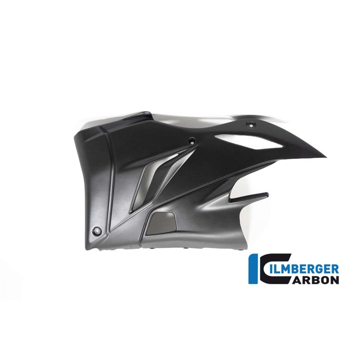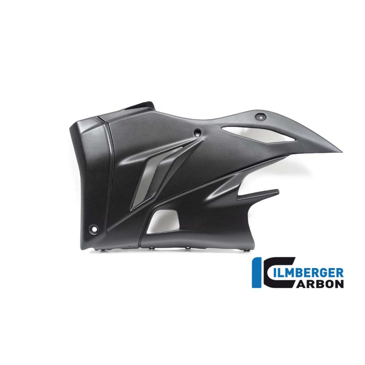 Das linke Verkleidungsunterteil in mattem Finish aus Carbon für die Ducati V4 Streetfighter ersetzt das originale Bauteil unter Verwendung der originalen Befestigungspunkte.