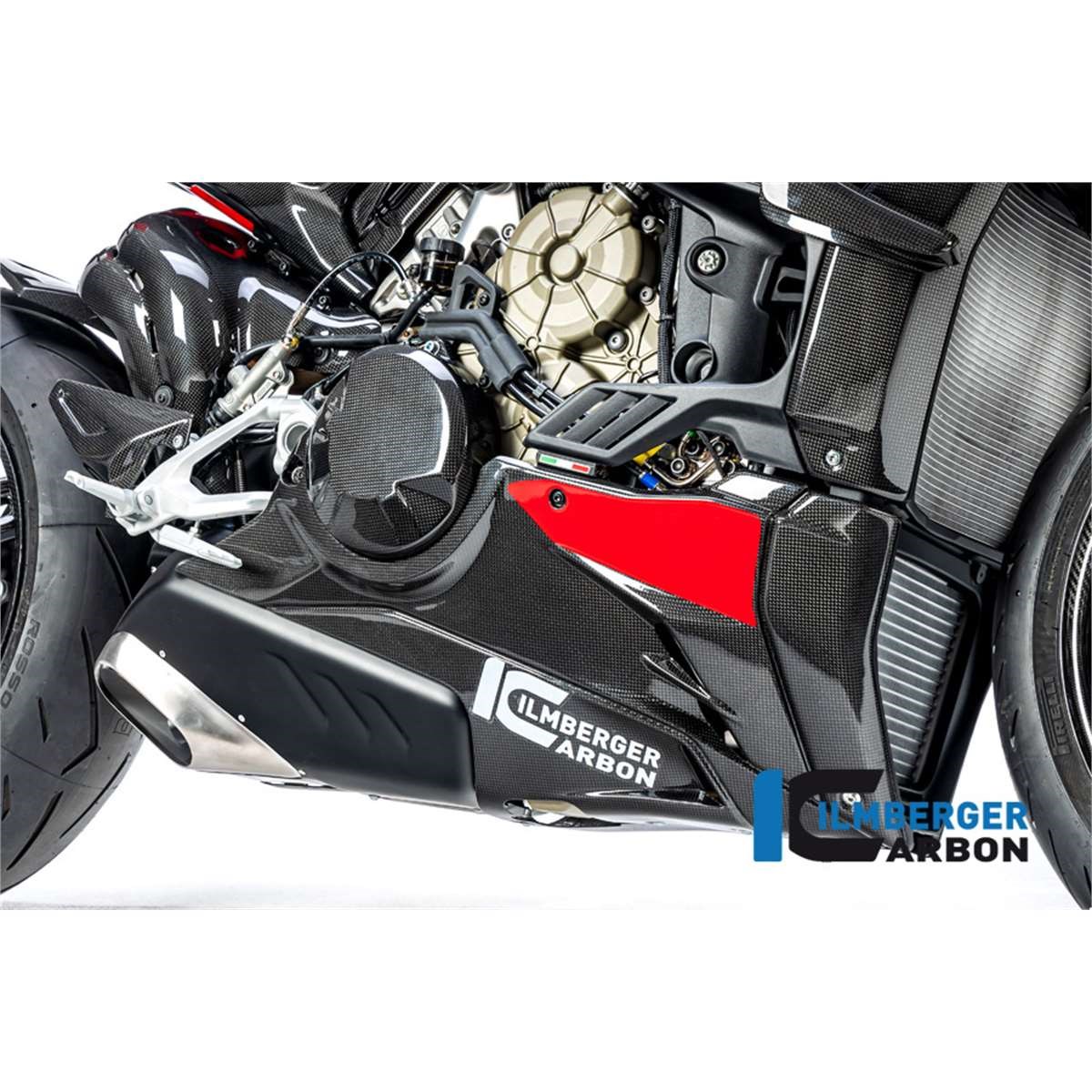 Das rechte Verkleidungsunterteil in glänzendem Finish aus Carbon für die Ducati V4 Streetfighter ersetzt das originale Bauteil unter Verwendung der originalen Befestigungspunkte.