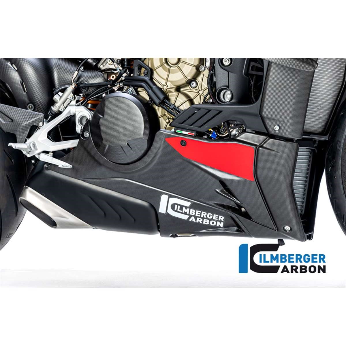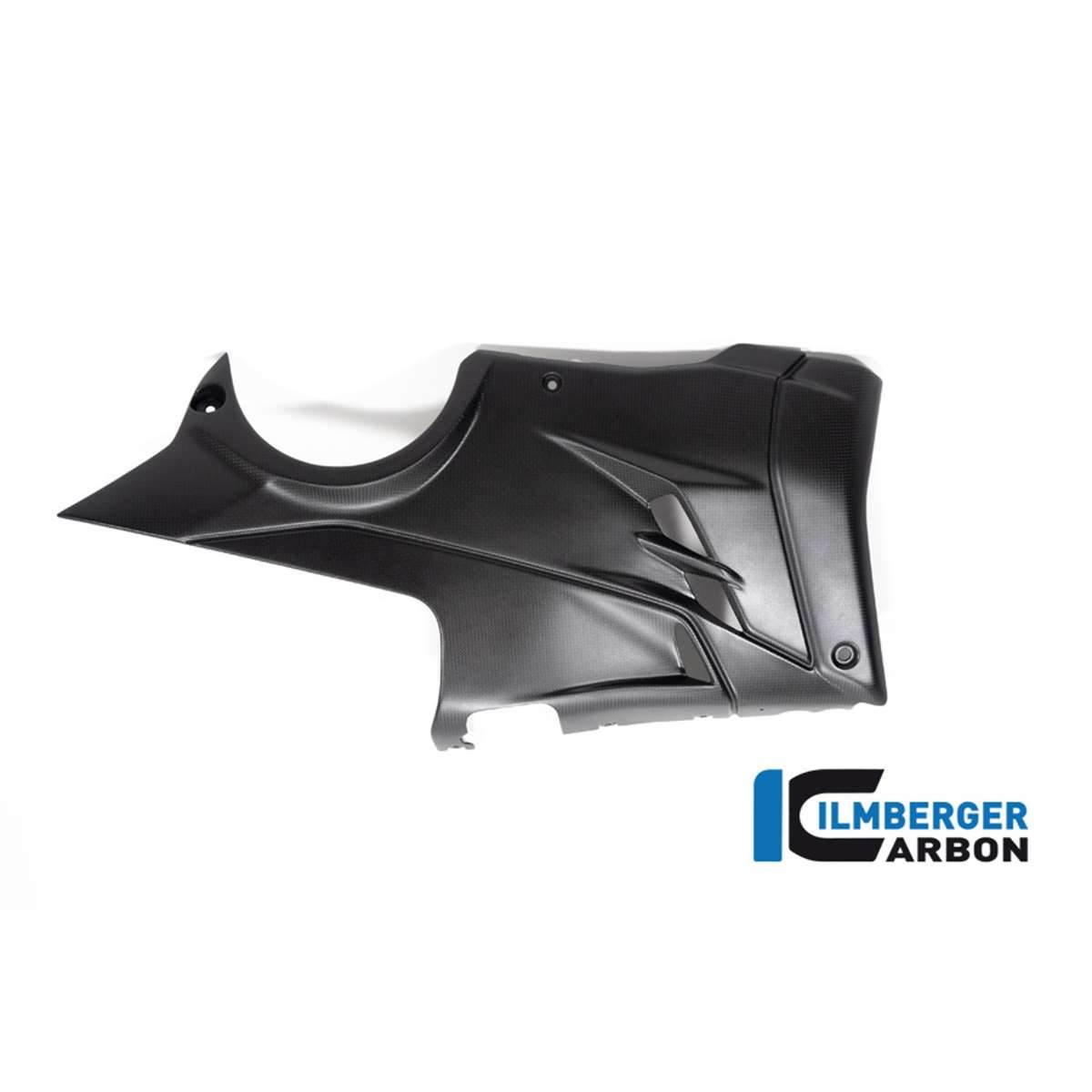 Das rechte Verkleidungsunterteil in mattem Finish aus Carbon für die Ducati V4 Streetfighter ersetzt das originale Bauteil unter Verwendung der originalen Befestigungspunkte.