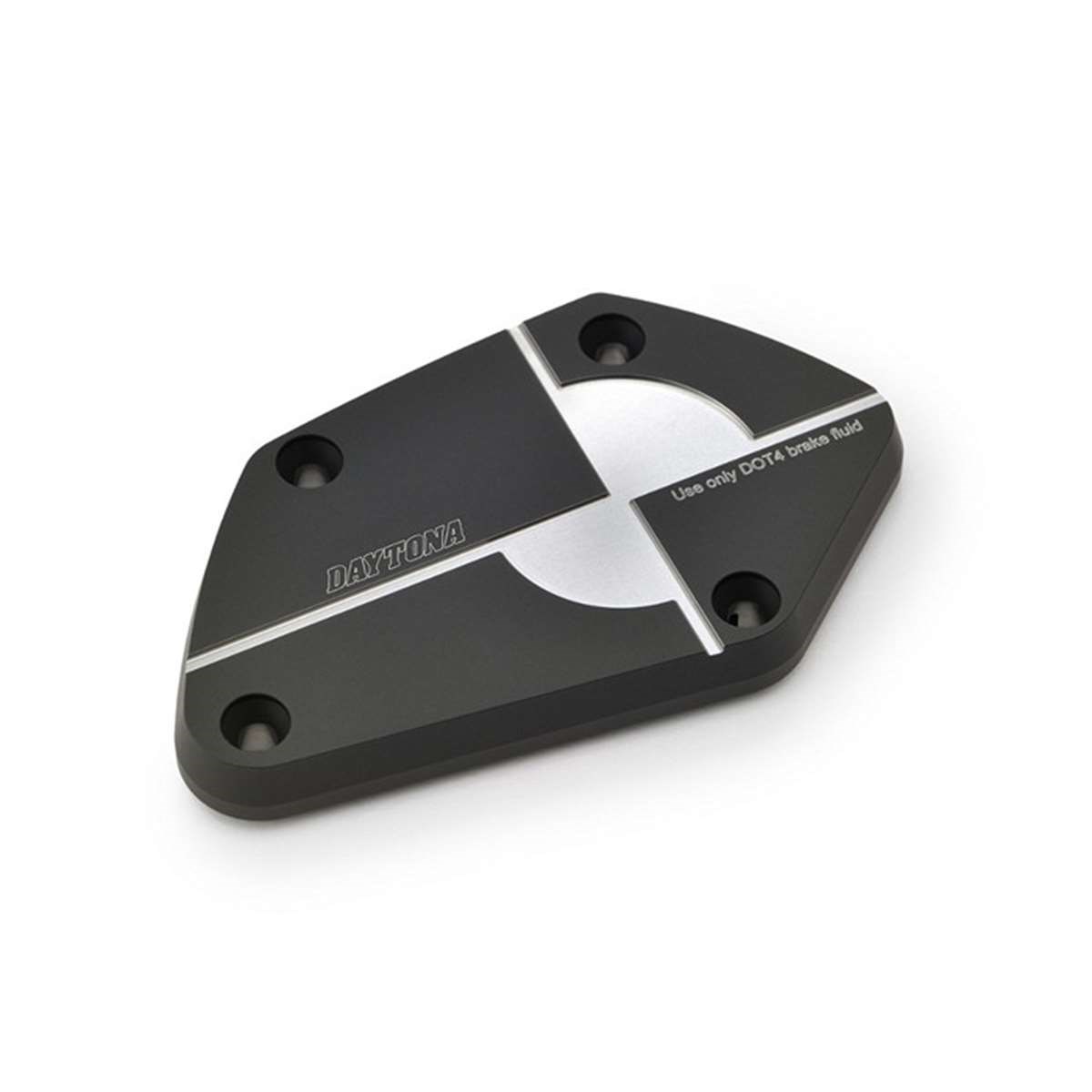 CNC-gefräster Aluminium Deckel für das Ausgleichgefäss der vorderen Bremspumpe, in schwarz und gun-metal grau 2-farbig eloxiert.