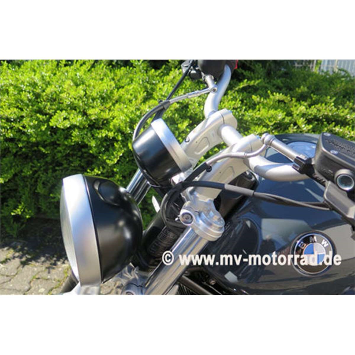 Unsere Lenkererhöhung ist mit Lenkerversatz. Der Lenker kommt nicht nur 50 mm höher, sondern - was besonders von Vorteil ist - auch 50 mm näher zum Fahrer.