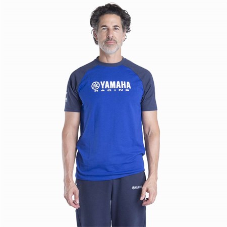 Sportliche, leichte und bequeme Paddock Blue-Jogginghose für Herren. In der Farbe Yamaha Racing Blue mit weissen Yamaha Racing-Logos.