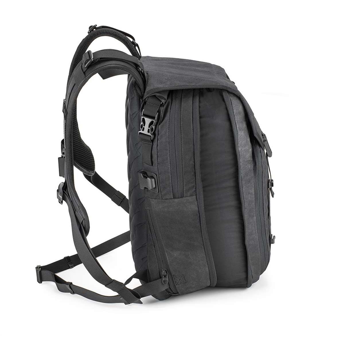- Der Roland Sands Design X Kriega Roam 34 Rucksack ist aus von RSD entwickelter Wachsbaumwolle und Cordura 1000 gefertigt, das ganze kombiniert mit Kriegas bahnbrechendem Quadloc-Lite Gurtsystem. Das Ergebnis ist eine Verbindung aus klassischem Stil und konkurrenzloser Funktionalität. Bestehend aus 3 Teilen: einer wasserdichten 15-Zoll-Laptoptasche mit Rollverschluss, einem herunterklappbaren 4-Liter-Reissverschlussfach mit Organizer-Taschen und einem geräimigen Hauptfach mit einem strapazierbaren YKK Reissverschluss, erweiterbar von 22 auf 30 Liter falls nötig. Ideal zum Tragen eines Integralhelms oder zum Transport der wöchentlichen Einkäufe. Weitere Merkmale sind die mit Fleece gefütterte Brillen-Reissverschlusstasche und als Option ein Hüftgurt mit Gürteltaschen und der Sissybar-Befestigungsriemen.