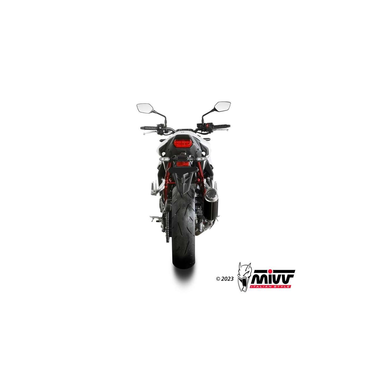 Sämtliche MIVV Anlagen lassen sich schnell und einfach gegen den Originalauspuff austauschen. Die Schalldämpfer von MIVV erhöhen Leistung, reduzieren das Gewichts und haben den unnachahmlichen MIVV-Sound. Die Schalldämpfer werden aus Edelstahl, Carbonfaser oder Titan gefertigt, bei einigen Dämpfern wird eine Carbon-Endkappe verbaut. Ein perfekter Mix, um den Look Ihrer Maschine zu optimieren und diese mit noch mehr Leidenschaft zu fahren.