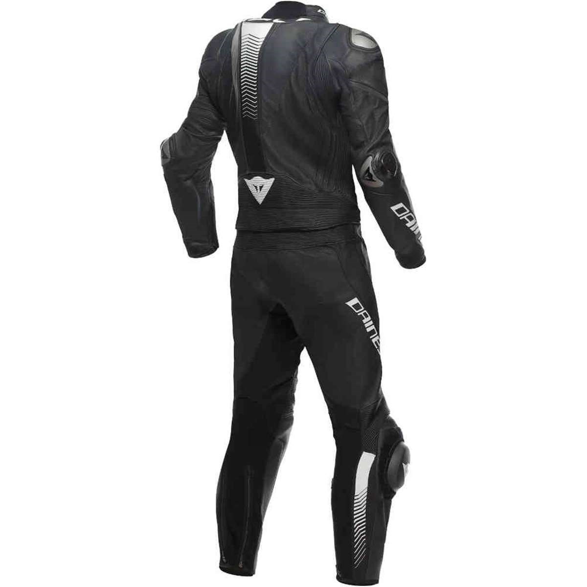 Sicherheit und Schutz basieren auf direkter Rennstrecken-Erfahrung: Verbundprotektoren an Schultern, Ellbogen und Knien, weiche Pro-Shape 2.0-Protektoren an den Hüften und abnehmbare Slider an den Ellbogen (RSS) ergänzen die austauschbaren Aluminiumplatten an den Schultern, ein Markenzeichen von Dainese. Metalleinsätze an den Schultern erleichtern im Falle eines Sturzes das Rutschen, verringern die Haftung auf dem Asphalt und das Risiko für gefährliche Überschläge.