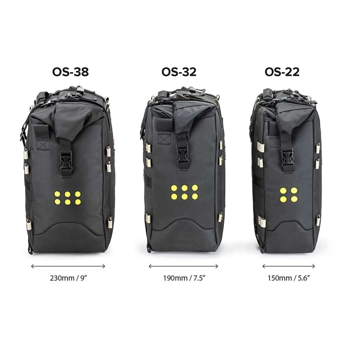 -Die OS-38 Soft Pannier hat viele Merkmale des herkömmlichen Adventure-Hartgepäcks mit den zusätzlichen Vorteilen Haltbarkeit und Sicherheit für Fahrten in anspruchsvollen Umgebungen, in denen es unvermeidlich zu Kratzern im Gelände kommt