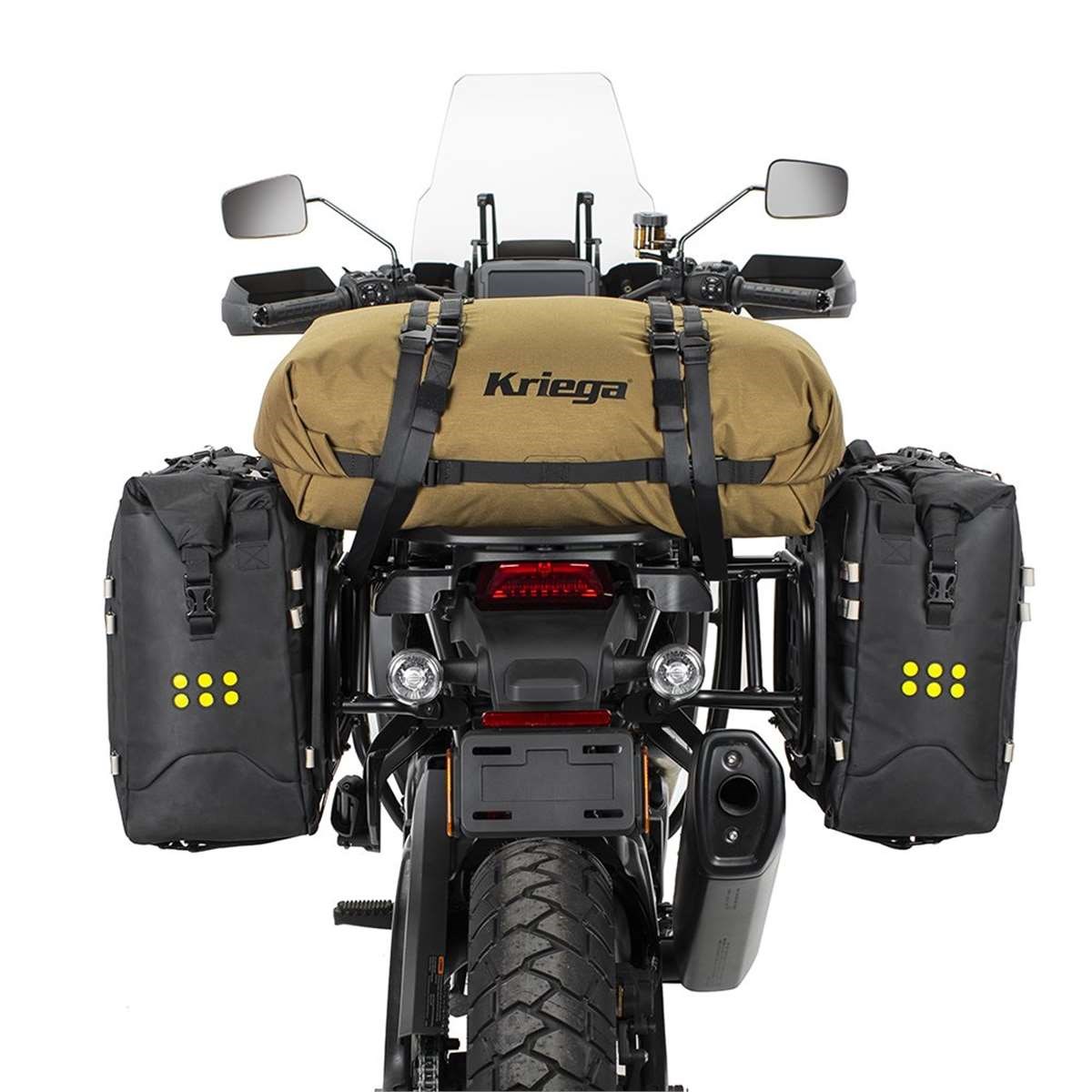 Hergestellt aus einer 500D Cordura® LITE-Außenschale mit einem Innenfutter mit versiegelten Nähten. Die Tasche ist so konstruiert, dass sie den härtesten Bedingungen standhält und maximalen Schutz für ihre persönlichen Gegenstände bietet. Der doppelseitige Rollverschluss bietet eine flexible, wasserdichte Lösung mit einfachem Zugang von beiden Enden. Der ROLLPACK ist so konzipiert, dass er sicher auf einem Gepäckträger oder Soziussitz sitzt und kann zusammengerollt und auf dem Motorrad oder in einem Rucksack transportiert werden, wenn Sie zusätzlichen Stauraum benötigen. Zur schnellen und einfachen Montage werden die integrierten Nockenschnallengurte um den Motorradrahmen geschlungen und an der Tasche befestigt. Zusätzlich sind Rahmenschleifen für Motorräder ohne sichtbaren Rahmen oder Gepäckträger im Lieferumfang enthalten. Nach der Montage am Motorrad einfach die integrierten Gurte in die Rahmenschlaufen einhängen und festziehen. Mit einem Fassungsvermögen von 40 Litern bietet der Rollpack 40 reichlich Platz für Ihre wichtigsten Dinge zum Trockenhalten und ist von unübertroffener Verarbeitungsqualität.