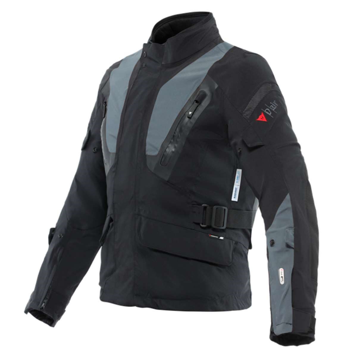 Motorradjacke STELVIO D-air® D-Dry® XT mit integriertem Airbagsystem, um all den Komfort einer wasserdichten Touringbekleidung und die Sicherheit des D-air® Airbags zu bieten, der von Dainese in 25 Jahren Forschung und Tests unter extremsten Bedingungen entwickelt wurde. Das Dainese D-air® Airbagsystem, das nicht mit dem Motorrad verbunden sein muss, erkennt gefährliche Situationen und schaltet sich in Notfällen ein, um den Motorradfahrer zu schützen, indem es den Airbag mit Mikrofilament-Technologie aktiviert, der Rücken und Brust abdeckt.
