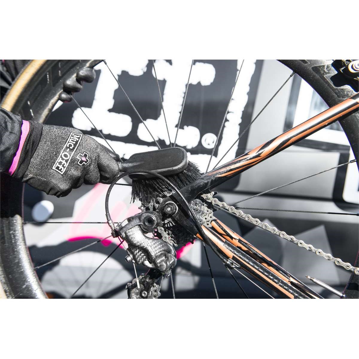 Muc-Off?s ?Tyre & Cassette Brush? ist so geformt und speziell konstruiert um Reifen und Kassetten schnell und einfach zu reinigen. Ihr einzigartiges Design verfügt über einen schlagfesten, Dual-Density-Griff für maximalen Gripp bei Nässe und langlebige Nylonborsten. Mit dem Bürstenkopf können auch die engeren Zwischenräume in den Kassetten oder Reifen spielend leicht erreicht und gereinigt werden.