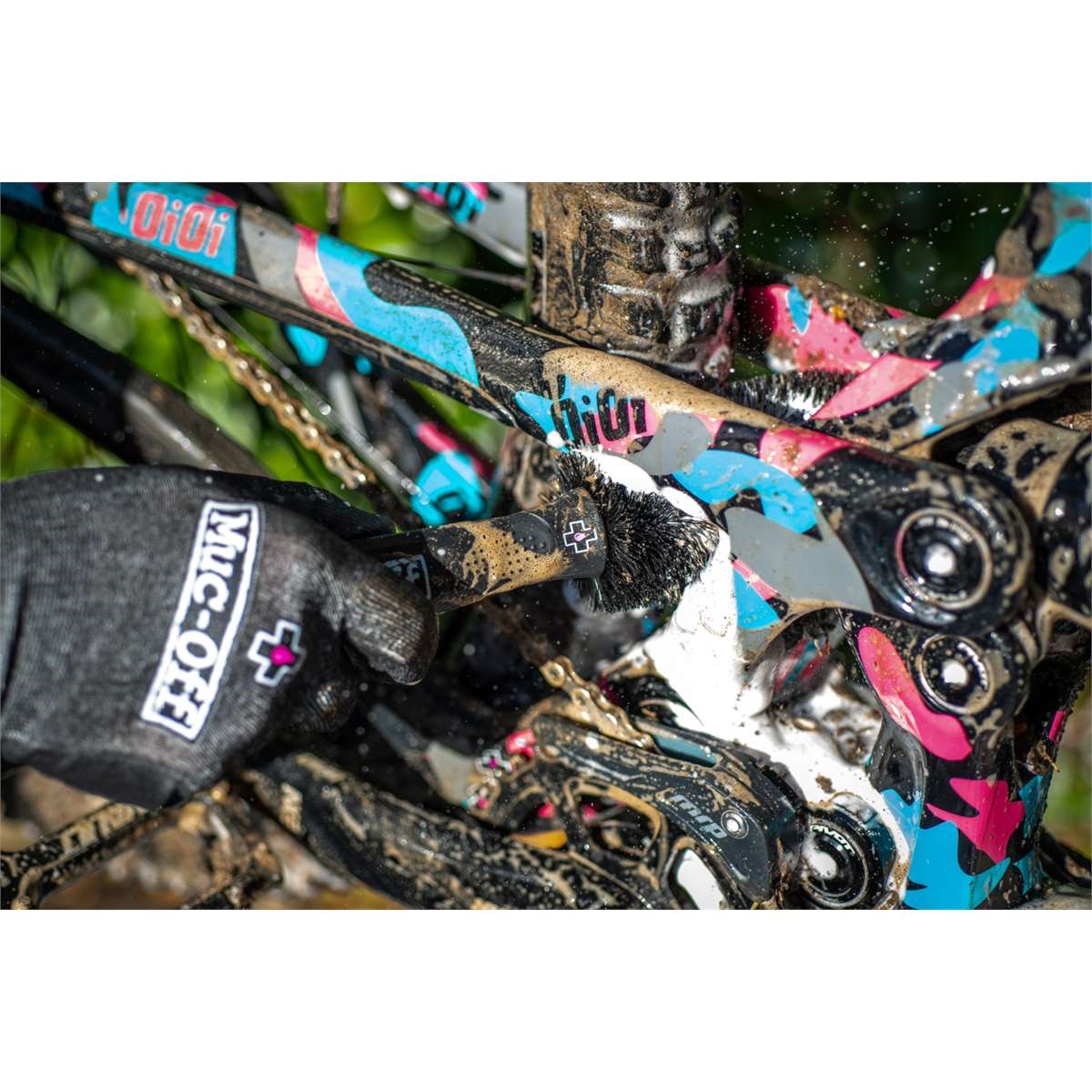 Muc-Off's Wheel Component Brush ist so geformt und speziell konstruiert um Felgen und Speichen schnell und einfach zu reinigen. Ihr einzigartiges Design verfügt über einen schlagfesten, Dual-Density-Griff für maximalen Gripp bei Nässe und' und langlebige Nylonborsten. Mit dem Bürstenkopf können auch die engeren Zwischenräume in den Speichen oder Umlenkungen spielend leicht erreicht und gereinigt werden.