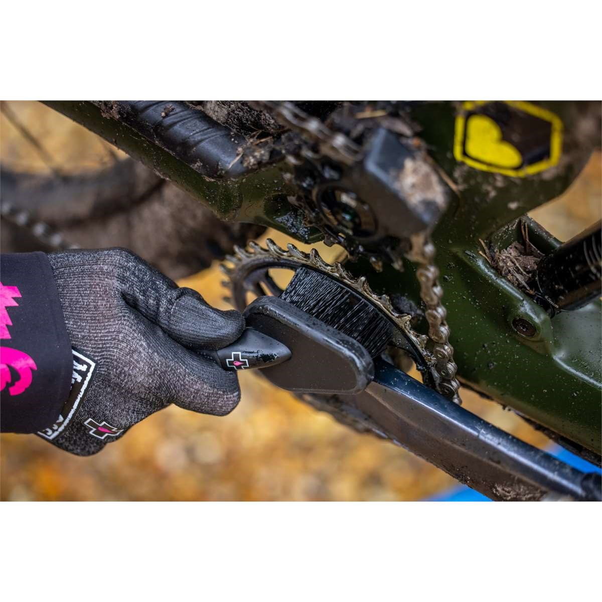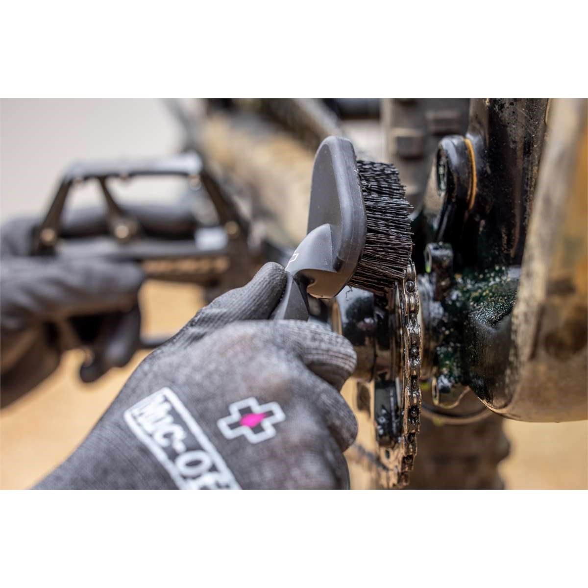 Mit den hochwertigen Muc-Off Bu?rsten wirst man selbst mit schwer erreichbaren Stellen locker fertig. Dank der langlebigen Borsten, den gummierten Griffen und Kanten hat hartnäckiger Schmutz keine Chance mehr. Fu?r jeden Einsatzbereich gibt es eine passende Bu?rste! Einsatzgebiet: Kettenblätter, Naben, Federn, Gabelkronen