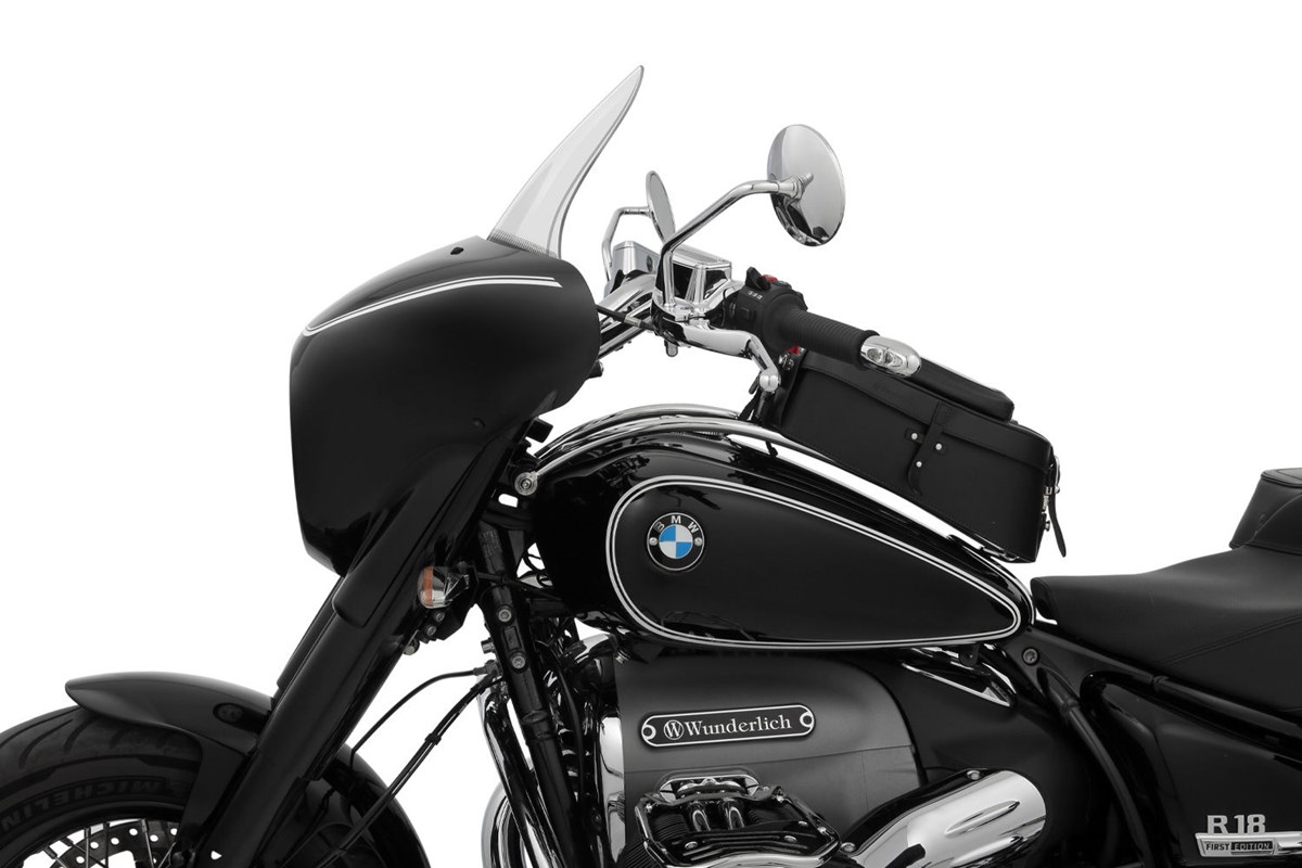 Kombiniert man unsere hochwertige TOURING-Verkleidungsscheibe mit unserer HIGHWAY Verkleidung lässt sich die Touren- und Langstreckentauglichkeit der R 18 nicht nur für die Route 66 spürbar verbessern. Die dem Fahrer zugeneigte, speziell auf die HIGHWAY Verkleidung abgestimmte, aerodynamische Form der Scheibe bietet effektive Entlastung vor dem Fahrtwind und besten Witterungsschutz. Dies gilt bereits ab mittleren Geschwindigkeiten. Die integrierte Scheibe sorgt zusammen mit unserer Highway Verkleidung für eine insgesamt optimierte laminare Anströmung der R 18.