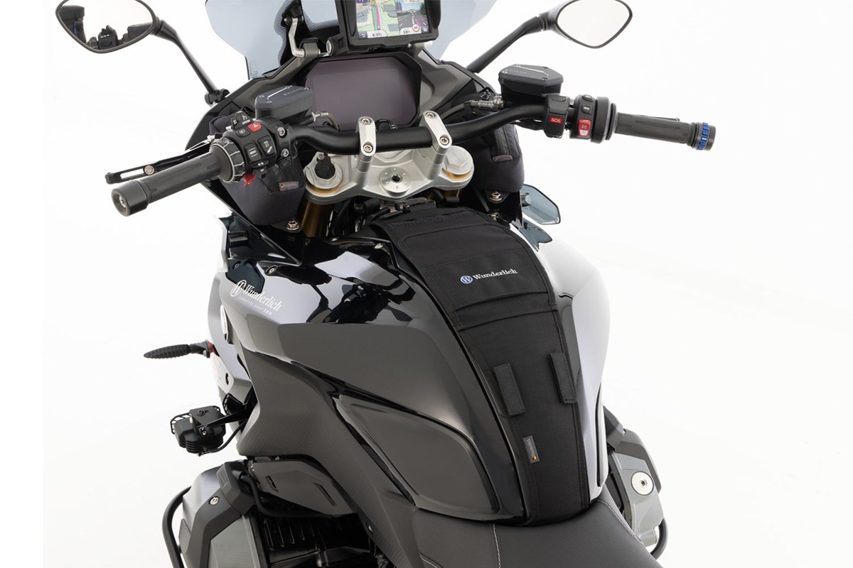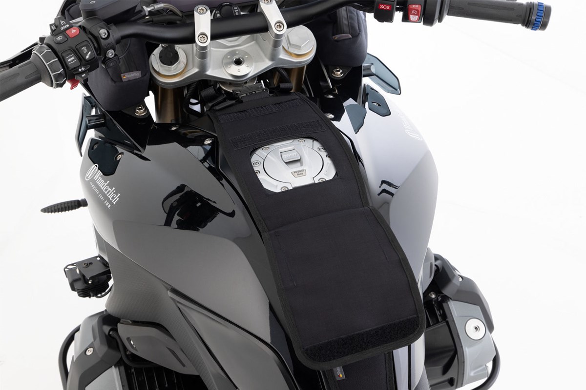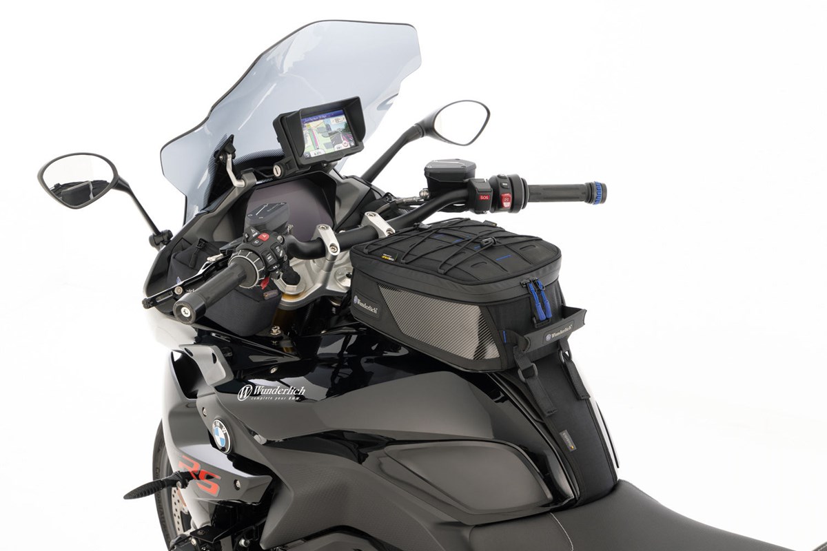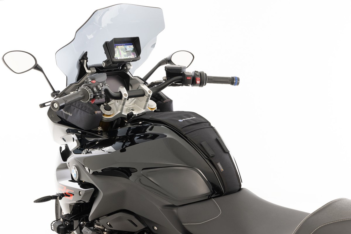 Die Systemhalterung wird mit wenigen Handgriffen am Fahrzeug befestigt und nimmt den Tankrucksack per Schnellbefestigung auf. Einfach die Haltezunge des Tankrucksacks durch die Aufnahme an der Halterung schieben und vorne verschließen. Eine einfache und deshalb geniale Schnellbefestigung, die auch mit Handschuhen und klammen Fingern ein sekundenschnelles An- und Abbauen ermöglicht: