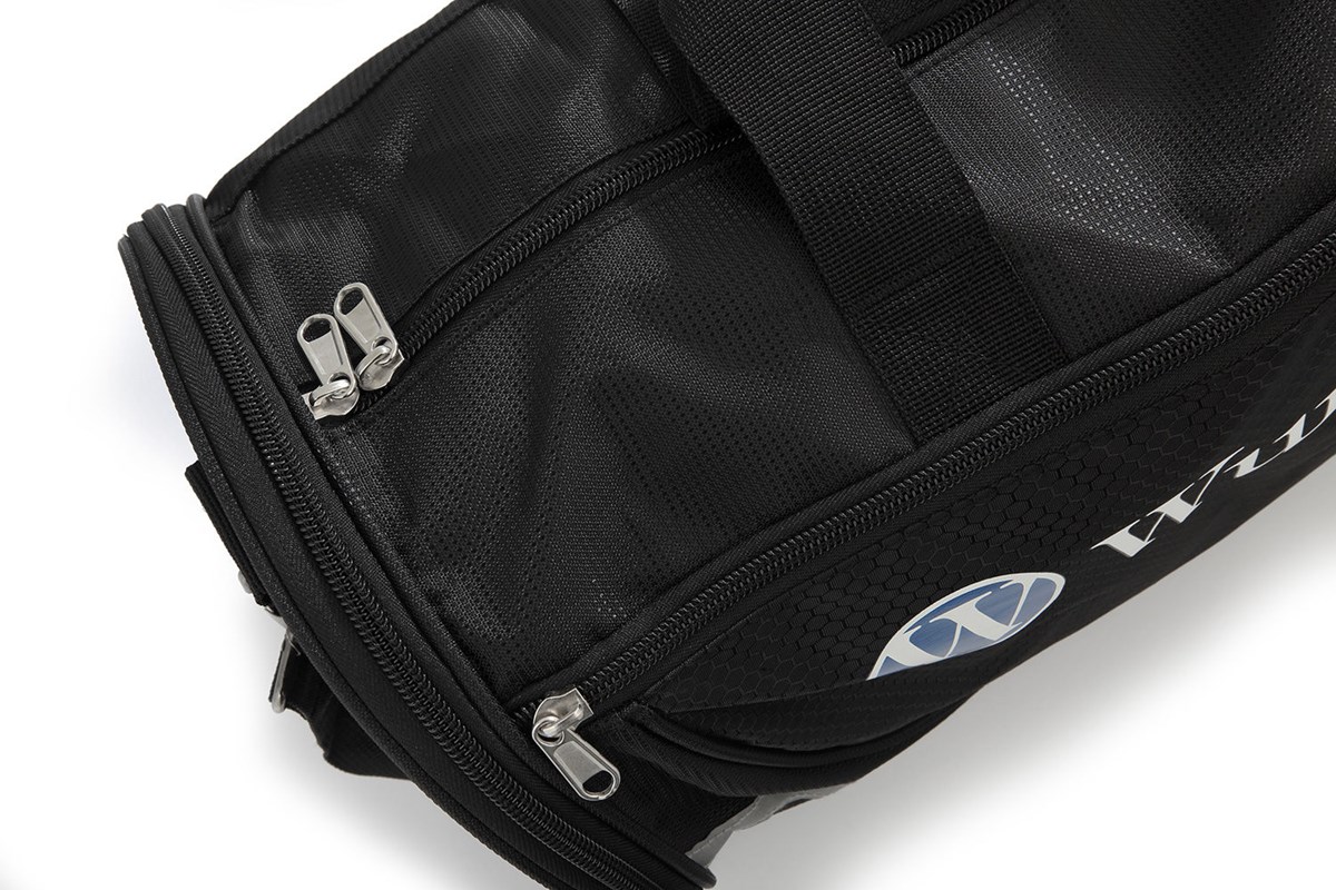 Überaus mit viel Platz, soliden Tragegriffen und verstellbarem Schultertrageriemen. Das sind die Eckdaten dieses vielseitigen Allrounders, der sich auf dem Gepäckrack des Motorrads oder Scooters genauso gut macht wie im Gym oder Schwimmbad. Das Hauptfach bietet reichlich Platz und verfügt über eine große Öffnung zum leichten Packen. Neben einem Außenfach gibt es eine integrierte, wasserfeste Innentasche, die schmutzige Trainingsschuhe oder die nasse Badehose und das Badetuch aufnimmt, ohne das die restlichen Utensilien schmutzig oder nass werden. Sie ist von außen zugänglich und leicht zu reinigen und zu trocknen, wenn sie schmutzig oder nass geworden ist. Mit Wunderlich Markenlogo.