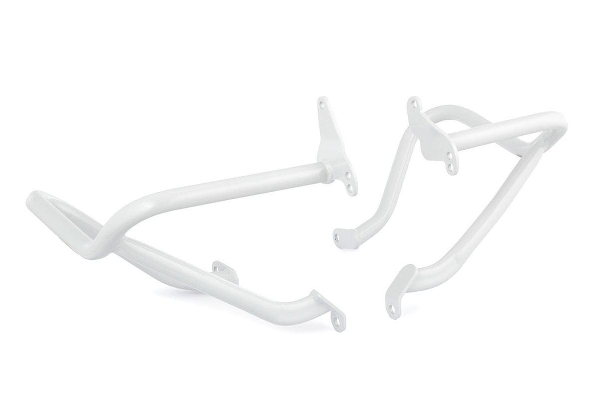Bei unseren Schutzbügeln stehen die schützende Funktion und das Produktdesign im Mittelpunkt. Daher bieten wir den Schutzbügel auch in Weiß an. Damit integriert sich der clevere Motorschutz in das Design Ihrer BMW.