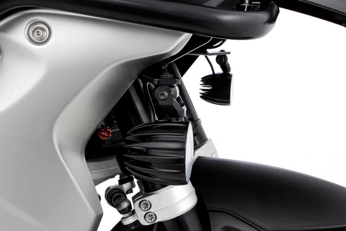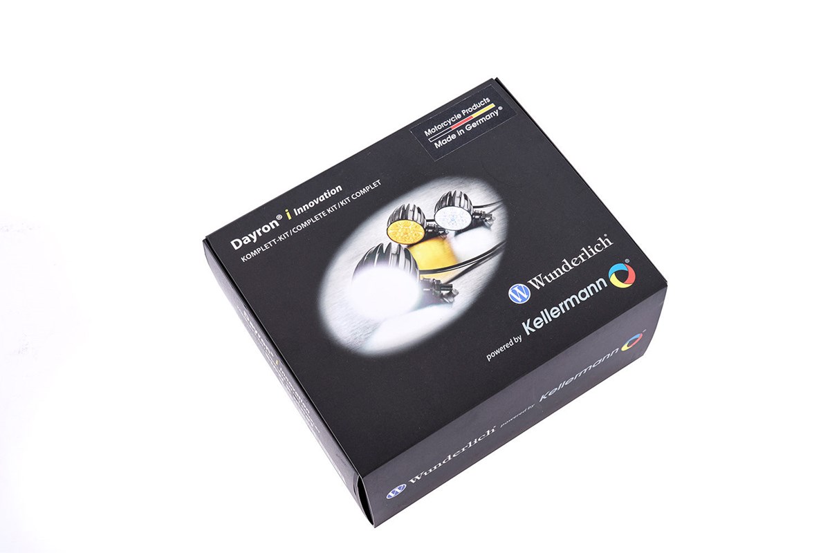 Die extreme Lichtleistung der Kellermann HighPower LED Technologie des integrierten DAYRON® LED Tagfahrlichtsystems sorgt zusammen mit der einzigartigen, brillanten Leuchtfläche der hervorstechenden, neuartigen Linsentechnologie für die optimale Sichtbarkeit im Verkehrsgeschehen. Die Anordnung des innovativen Tagfahrlichtsystems vergrößert optisch die Frontsilhouette und das Erscheinungsbild des Motorrads.
