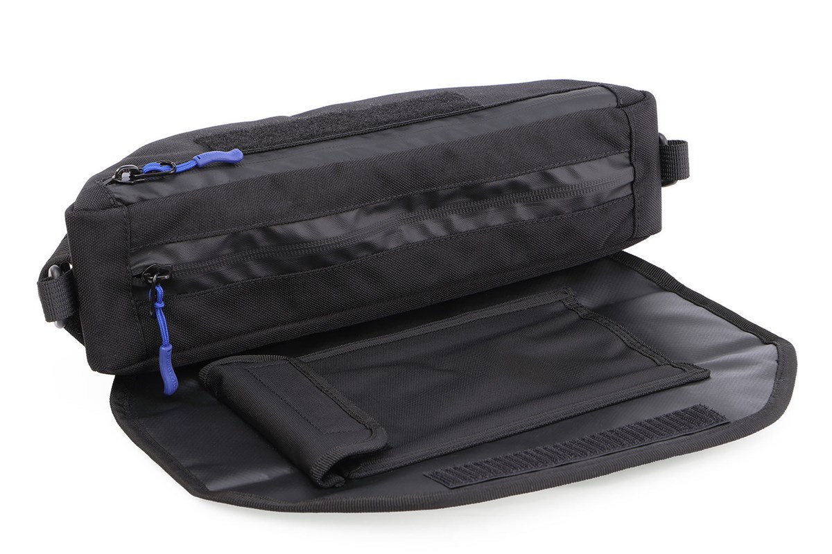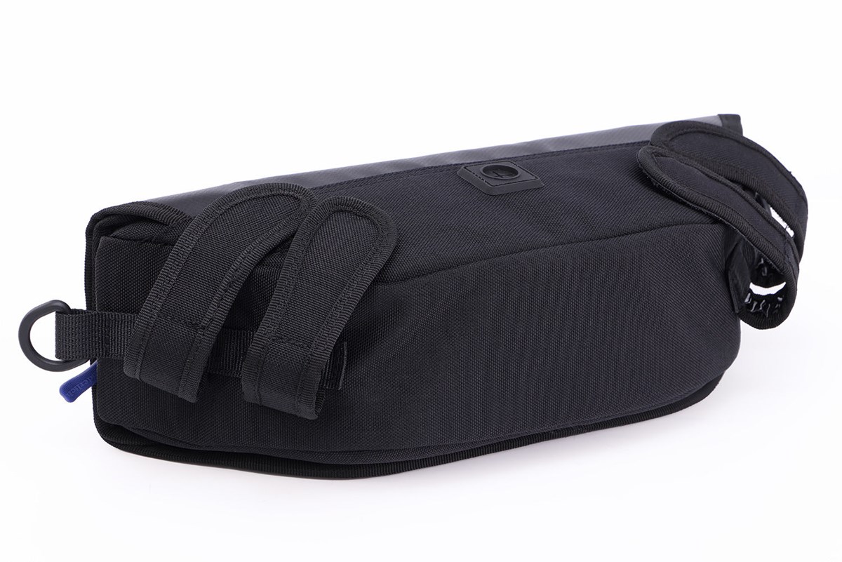 Die Lenkertasche verfügt über eine einfach zu öffnende Klappe, in der unterseitig das Smartphone Einschubfach eingearbeitet ist. Das große Hauptfach ist mit einem wasserabweisenden und schmutzunempfindliche Reißverschluss verschlossen. Damit Handys etc. unterwegs ladbar sind, verfügt die Tasche über einen wasserfesten E-Connect-Kabelzugang. Für Stabilität unter allen Bedingungen sorgen eingearbeitete Verstärkungen, eine Vibrations-absorbierende Fütterung und der aufwendige Zwei- bzw. Dreischicht-Aufbau.