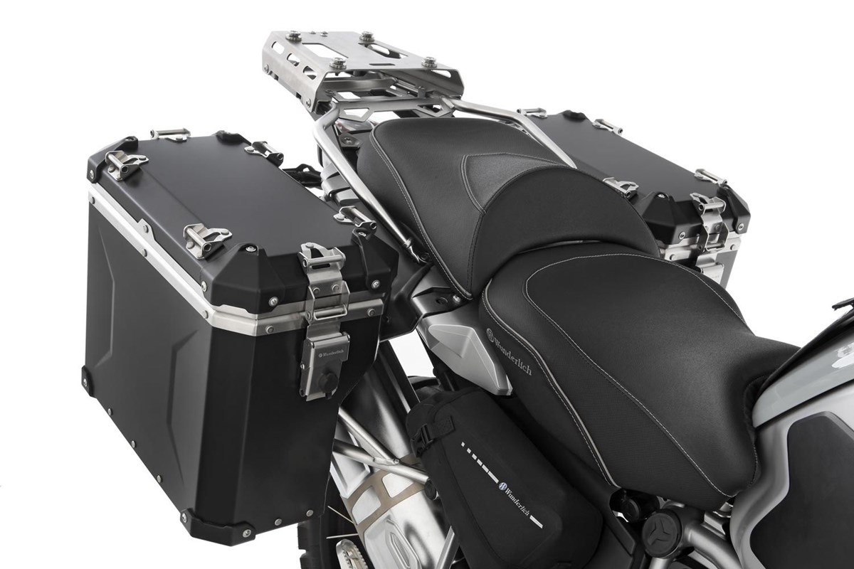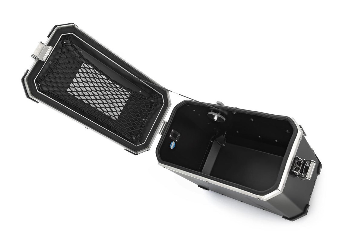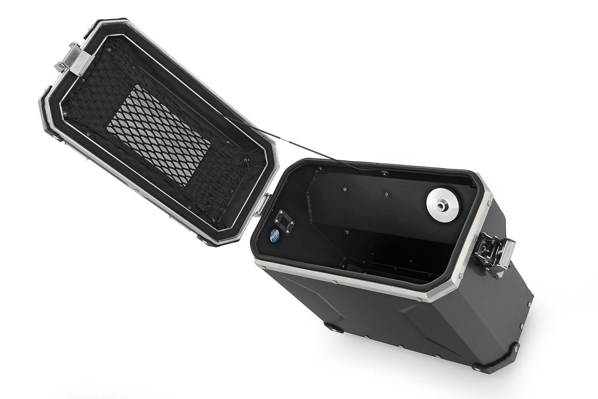 Dank der zusätzlichen Verzurrösen auf dem Deckel können weitere Gepäckstücke -beispielsweise unsere Rack Pack-Taschen- sicher aufgeschnallt werden. Die Kofferdeckel sind innen serienmäßig mit praktischen Gepäcknetzen ausgestattet, für alles, was unterwegs unmittelbar griffbereit sein soll: Regenzeug, Werkzeug oder die Verbandstasche.