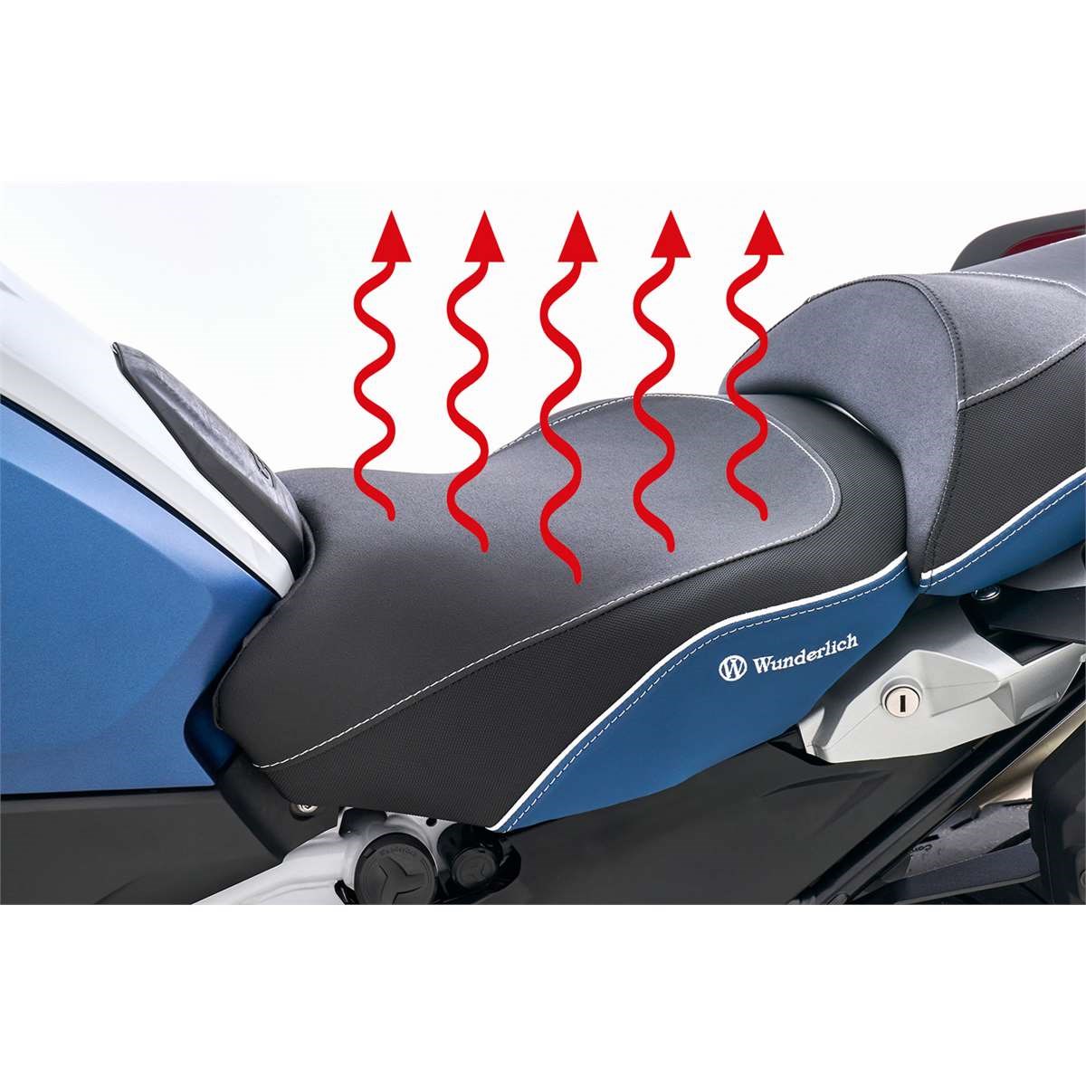 Sie bieten perfekten Halt und aktive, sichere Kontrolle bei forcierter Fahrt, ganz besonders auch beim Bremsen: Wer kennt das nicht, wenn die Sozia beim Ankern plötzlich von hinten schiebt und man sich unvermittelt abstützen und gleichzeitig, in einer vielleicht brenzligen Lage, auch noch lenken muss. Mit Wunderlichs eigens entwickelter Stützkontur gehören diese Schreckmomente beim Bremsen der Vergangenheit an. Die innovative, ergonomische 3-D-Kontur sorgt auch dafür, dass Druckstellen an den Innenschenkeln beim Stehen an der Ampel, passé sind.