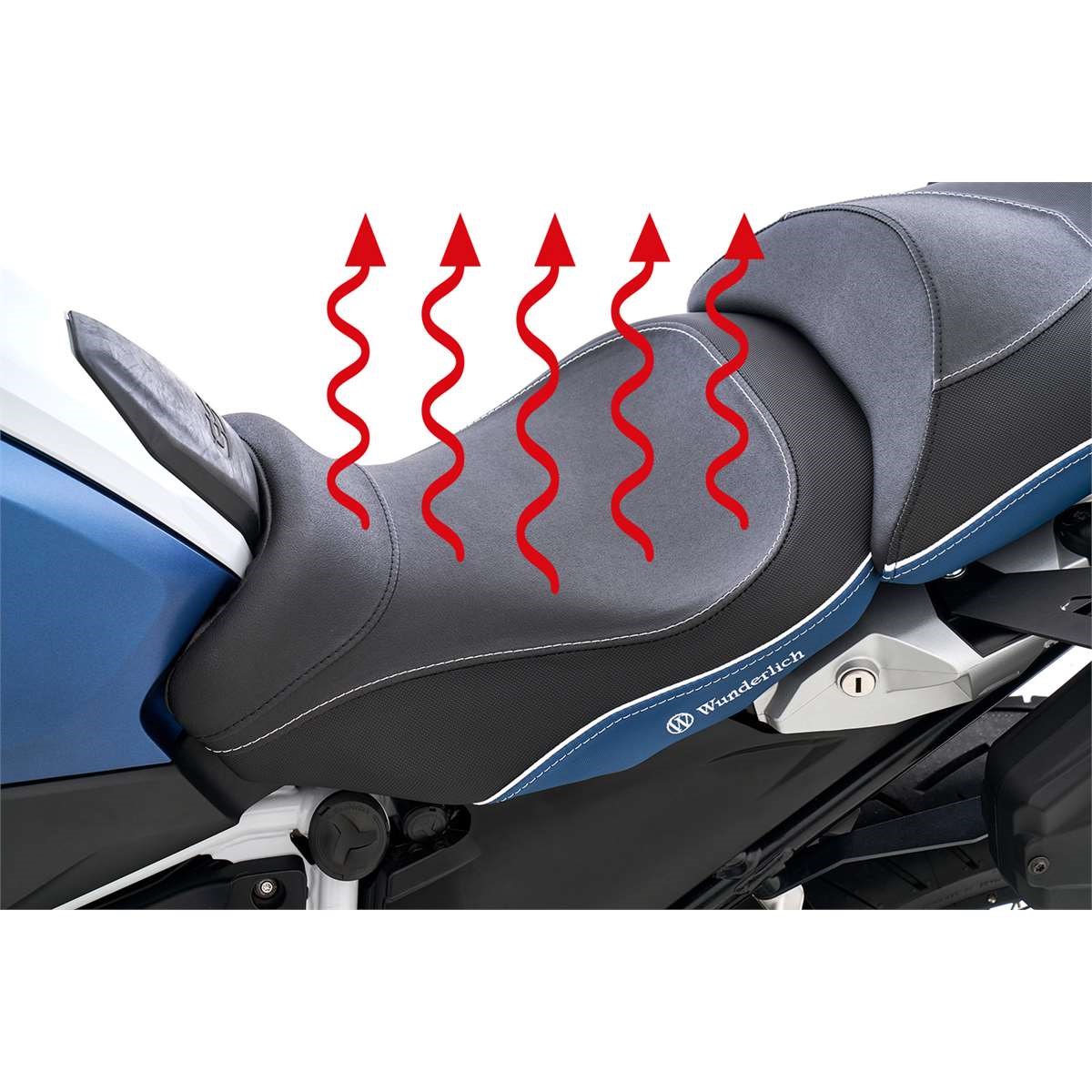 Sie bieten perfekten Halt und aktive, sichere Kontrolle bei forcierter Fahrt, ganz besonders auch beim Bremsen: Wer kennt das nicht, wenn die Sozia beim Ankern plötzlich von hinten schiebt und man sich unvermittelt abstützen und gleichzeitig, in einer vielleicht brenzligen Lage, auch noch lenken muss. Mit Wunderlichs eigens entwickelter Stützkontur gehören diese Schreckmomente beim Bremsen der Vergangenheit an. Die innovative, ergonomische 3-D-Kontur sorgt auch dafür, dass Druckstellen an den Innenschenkeln beim Stehen an der Ampel, passé sind.