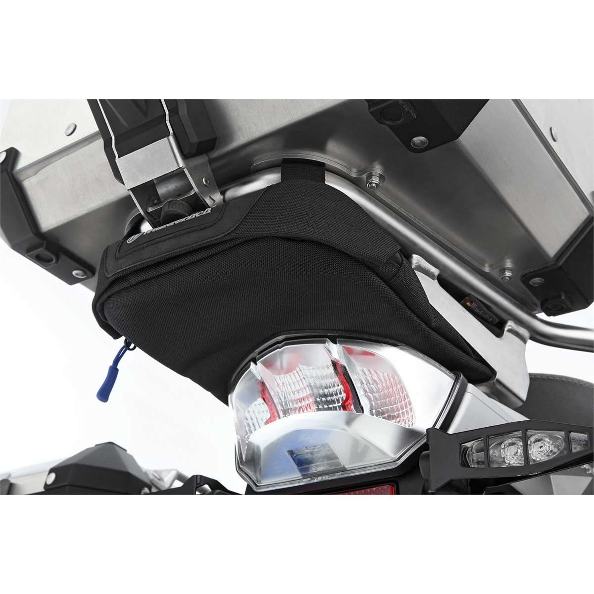 Unsere GAP-BAG! Perfekt maßgeschneidert fügt sich diese hochwertige Gepäcktasche griffgünstig gelegen in der Lücke unterhalb der Gepäckbrücke ein und nutzt den freien Raum optimal aus. Ideal für Werkzeug, Erste-Hilfe-Set, Snacks für unterwegs oder die Ersatzhandschuhe. Konfektioniert aus hochwertigem, wasserfestem, teflonbeschichtetem CORDURA-Gewebe, das hochfest, abriebsicher und UV-stabil ausgerüstet ist. Der unter einer umklappbaren Schutzstulpe gut geschützte Reißverschluss ist wasserfest und staubdicht. Weitere Ausstattungsmerkmale: Griffige Zipper, kontrastierendes Innenfutter, einfache Montage. Die Befestigungsschlaufe kann jenseits des Motorrads am Gürtel befestigt werden.