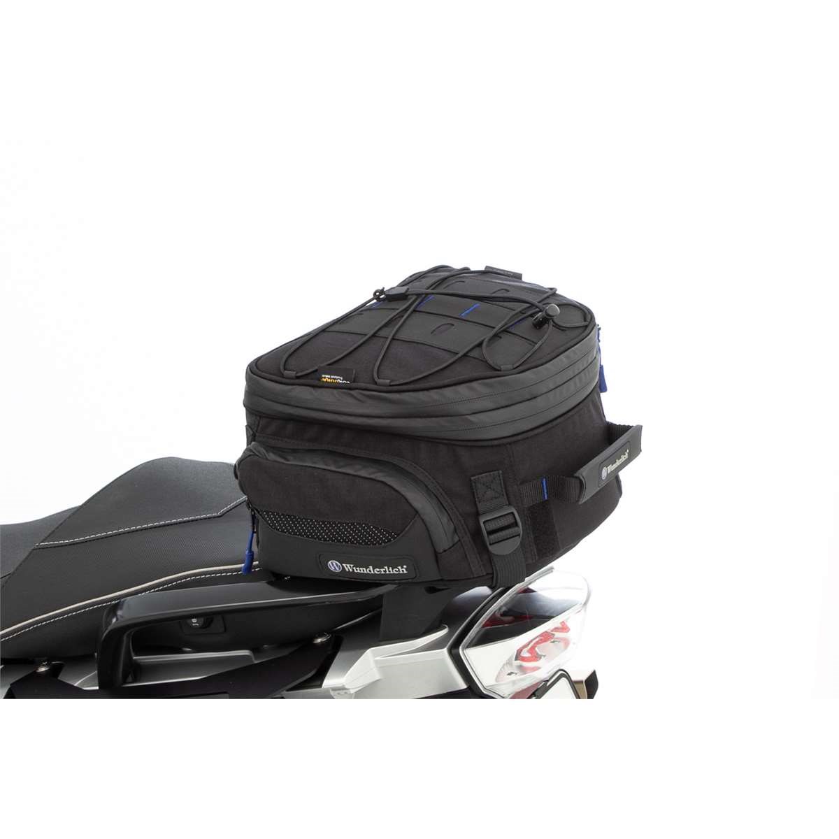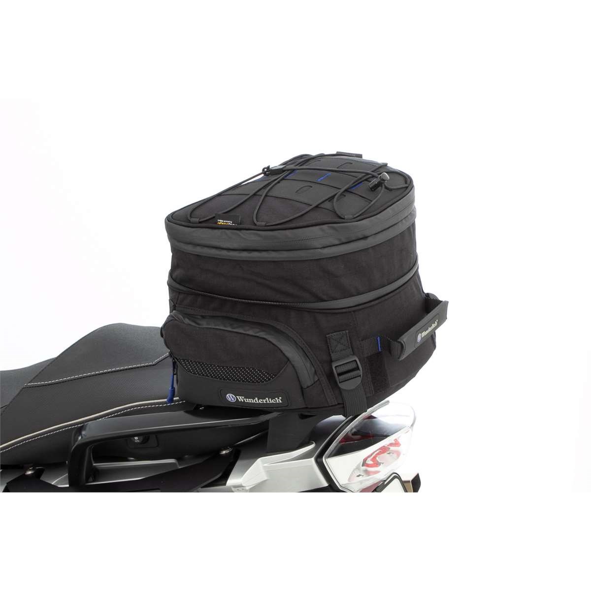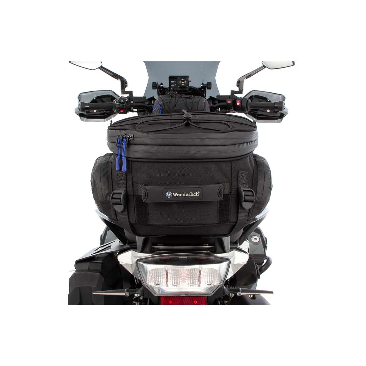 Sie verfügt über ein Volumen von 14 Litern, das sich bei Bedarf auf 20 Liter erweitern lässt. Seitlich finden sich zwei zusätzliche praktische Taschen. Die Basis der Tasche ist formstabil ausgeführt. Sie wird mit einem wasserabweisenden, staubdichten Reißverschluss verschlossen. So gibt die Tasche dem Gepäck sicheren Halt und Schutz und sie flattert bei hohen Geschwindigkeiten nicht. Sie verursacht deshalb auch keine geschwindigkeitsbedingten Geräusche.