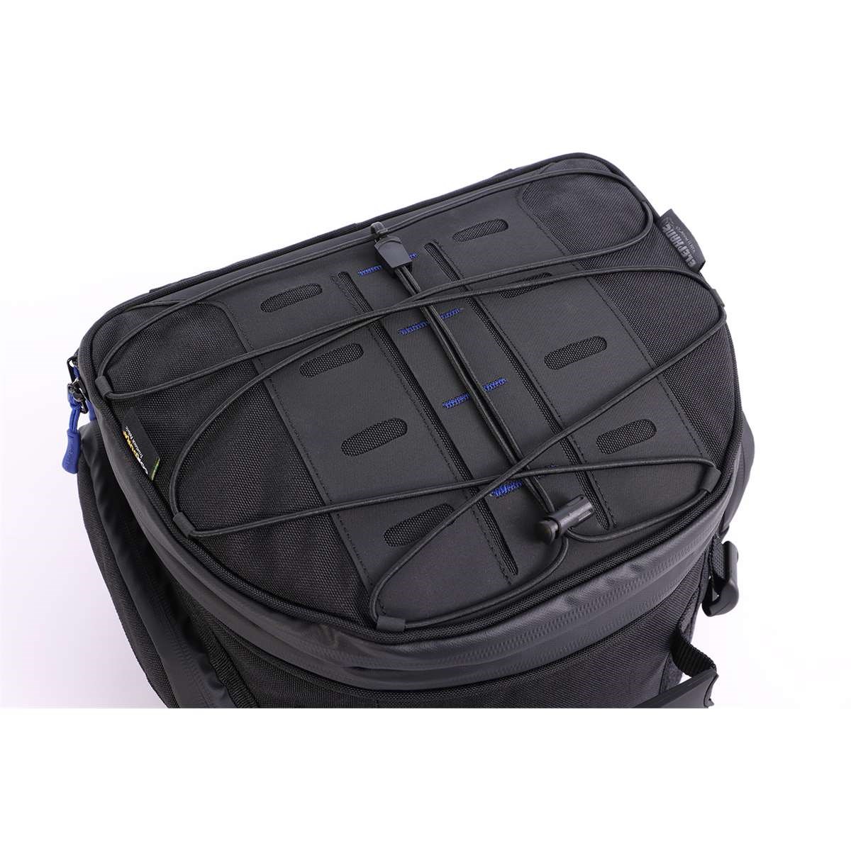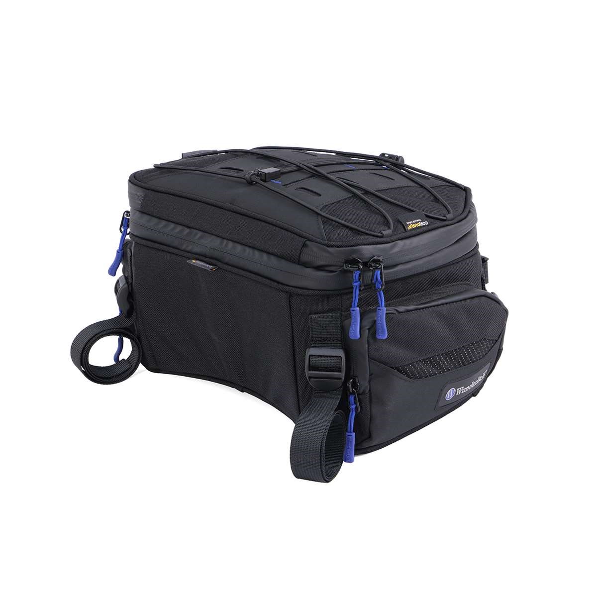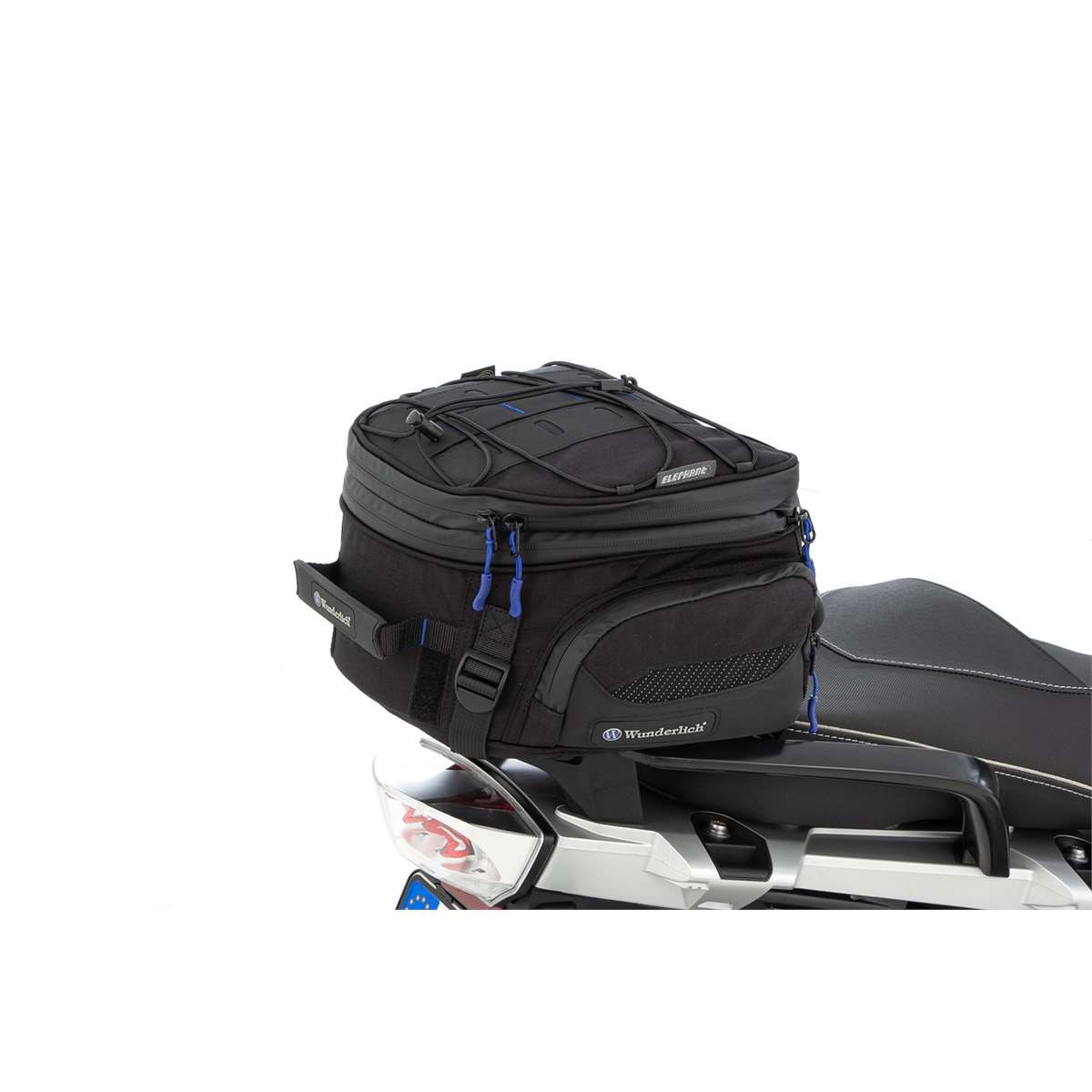 Sie verfügt über ein Volumen von 14 Litern, das sich bei Bedarf auf 20 Liter erweitern lässt. Seitlich finden sich zwei zusätzliche praktische Taschen. Die Basis der Tasche ist formstabil ausgeführt. Sie wird mit einem wasserabweisenden, staubdichten Reißverschluss verschlossen. So gibt die Tasche dem Gepäck sicheren Halt und Schutz und sie flattert bei hohen Geschwindigkeiten nicht. Sie verursacht deshalb auch keine geschwindigkeitsbedingten Geräusche.
