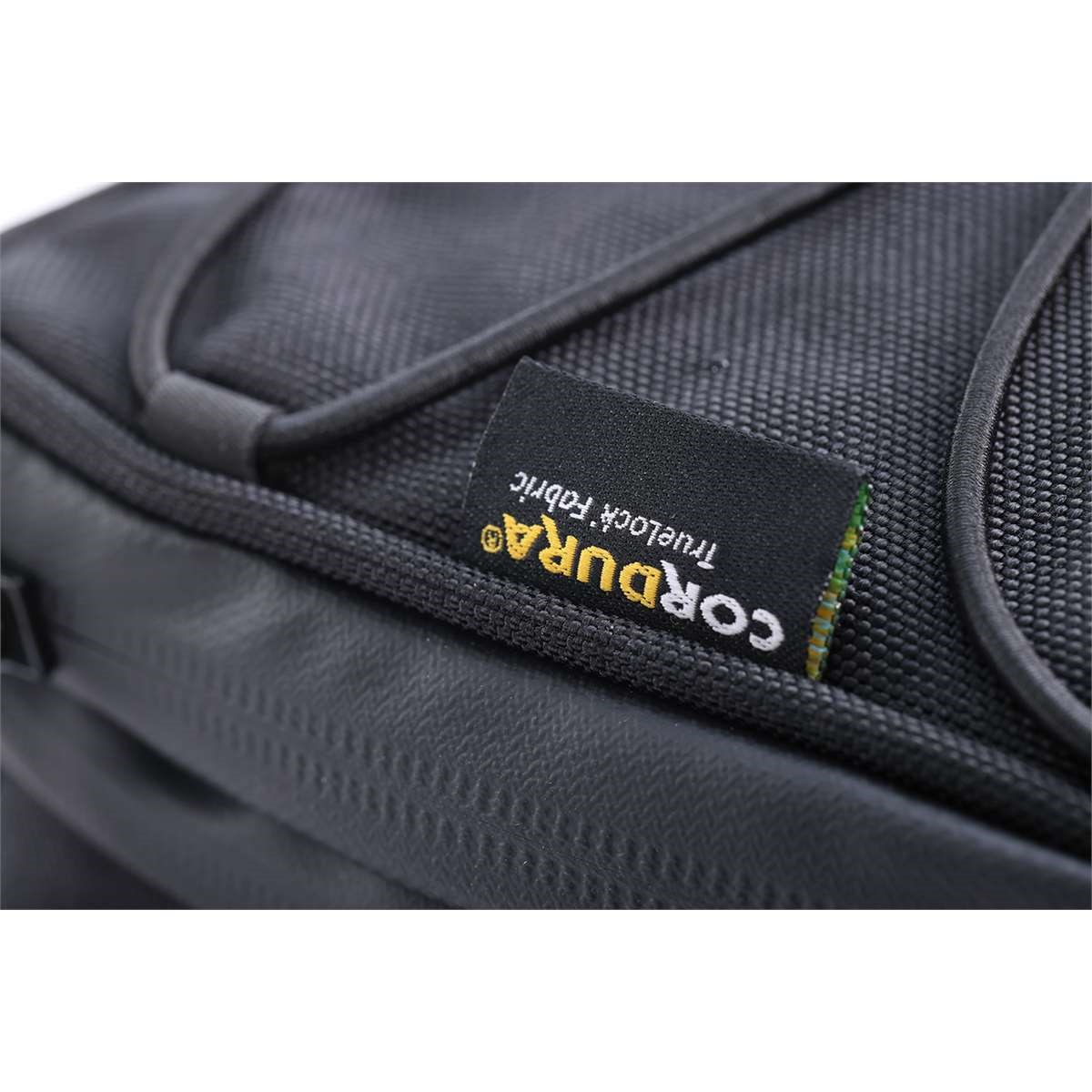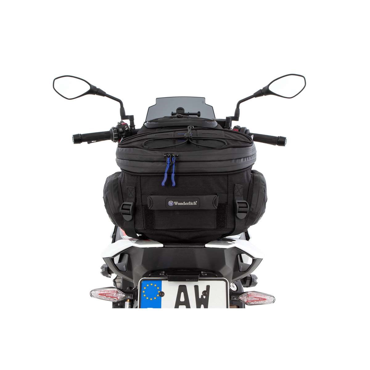 Sie verfügt über ein Volumen von 14 Litern, das sich bei Bedarf auf 20 Liter erweitern lässt. Seitlich finden sich zwei zusätzliche praktische Taschen. Die Basis der Tasche ist formstabil ausgeführt. Sie wird mit einem wasserabweisenden, staubdichten Reißverschluss verschlossen. So gibt die Tasche dem Gepäck sicheren Halt und Schutz und sie flattert bei hohen Geschwindigkeiten nicht. Sie verursacht deshalb auch keine geschwindigkeitsbedingten Geräusche.