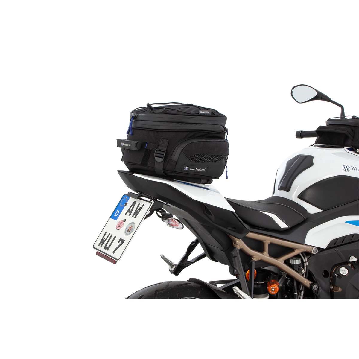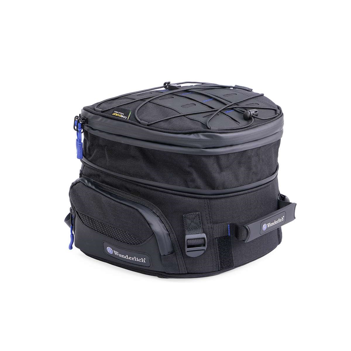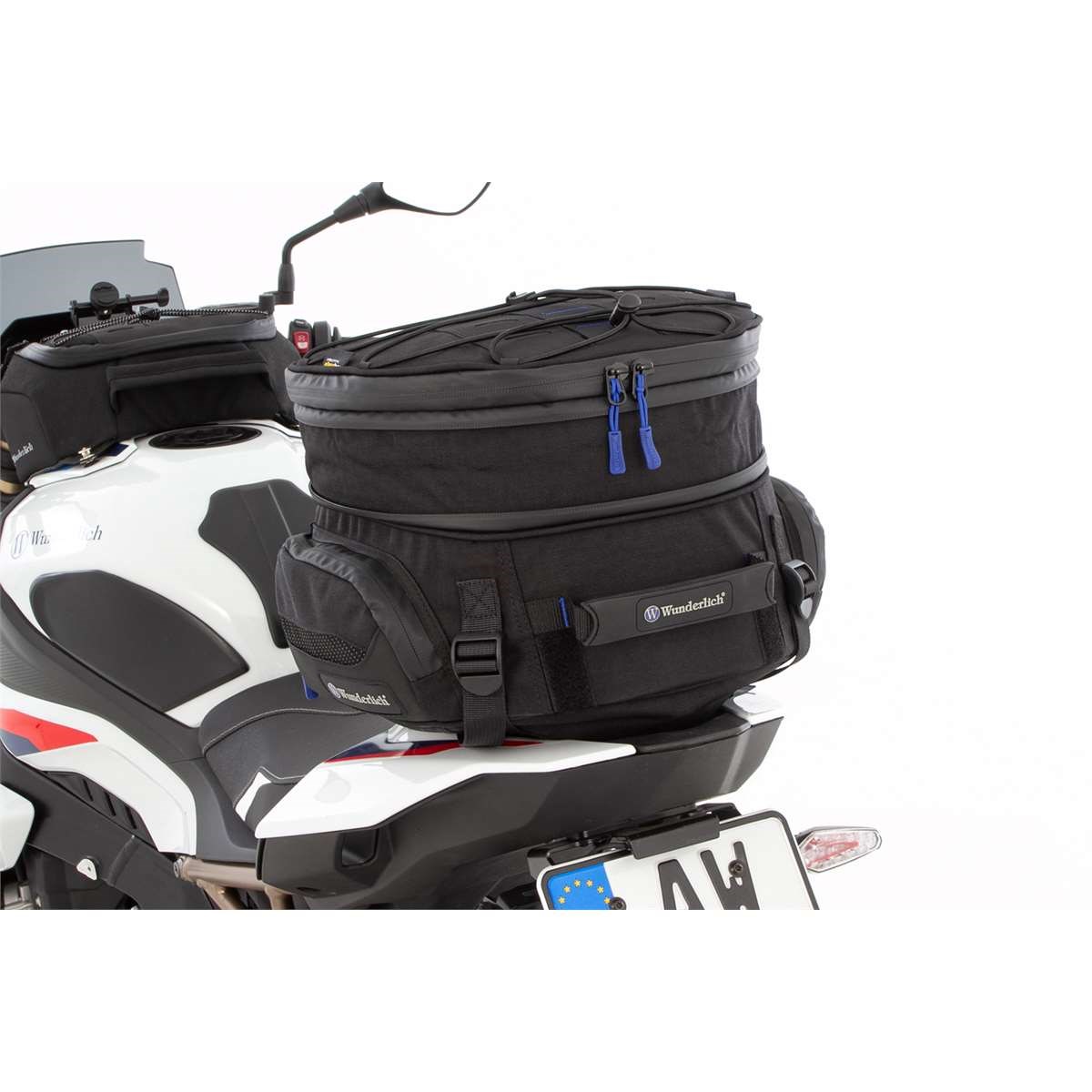 Unsere multifunktionale und sportlich-kompakte Tasche, wird auf der Abdeckung des Soziussitzes einfach und unkompliziert befestigt. Sie eignet sich perfekt, wenn auf die Schnelle zusätzlicher Stauraum benötigt wird. Das neue, gestraffte, funktionale Design unserer Sitzbank- und Gepäckträgertasche ist an den dezenten blauen Applikationen erkennbar.