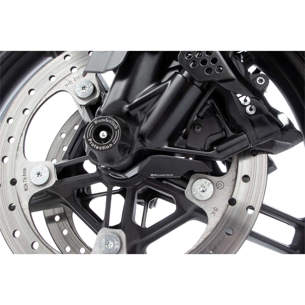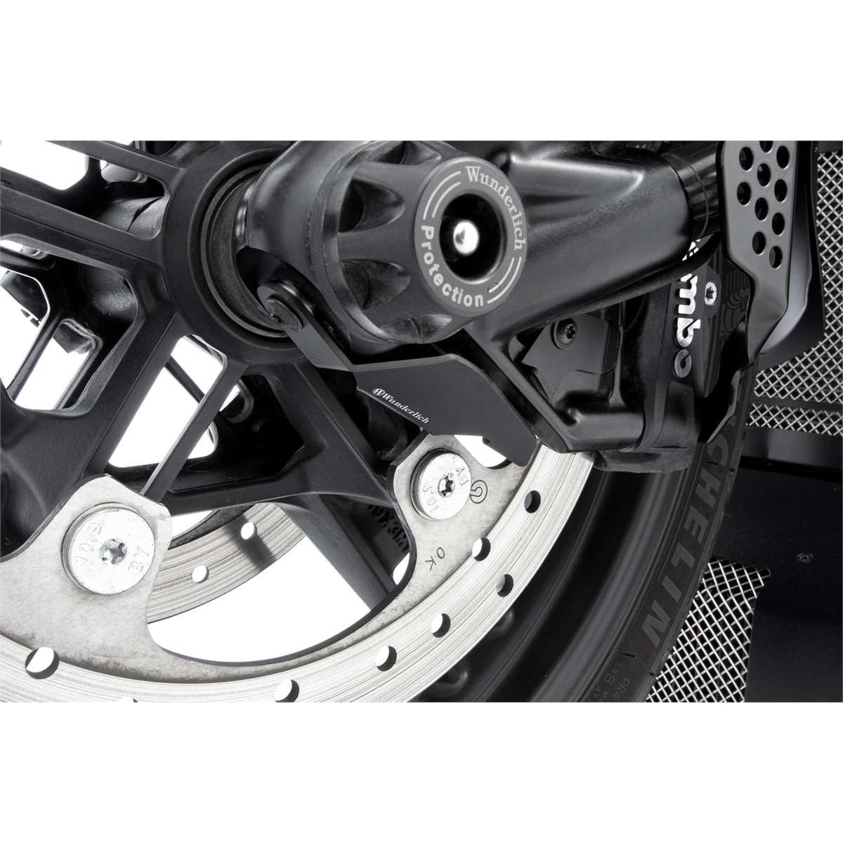 Der ABS-Sensor für das Vorderrad liegt sehr exponiert und ungeschützt zwischen Radialbremssattel und Vorderradachse. Er ist ein sensibles Bauteil, das zusammen mit dem ABS-Kranz und dem ABS-Steuergerät verhindert, dass die Vorderradbremse blockiert und der Fahrer die Kontrolle übers Motorrad verliert. Ein wichtiges Sicherheitsbauteil also, das immer funktionieren muss und das es gegen mechanische Beschädigungen durch Steine, Geäst oder sonstige Fremdkörper zu schützen gilt.