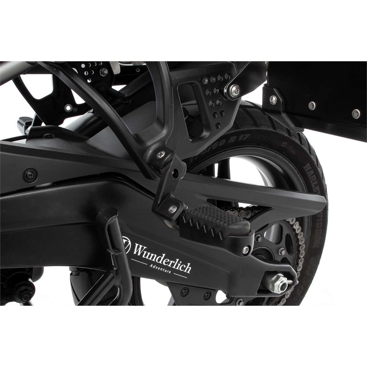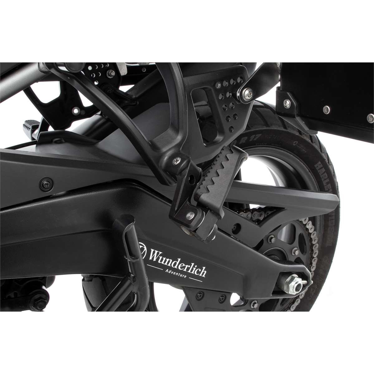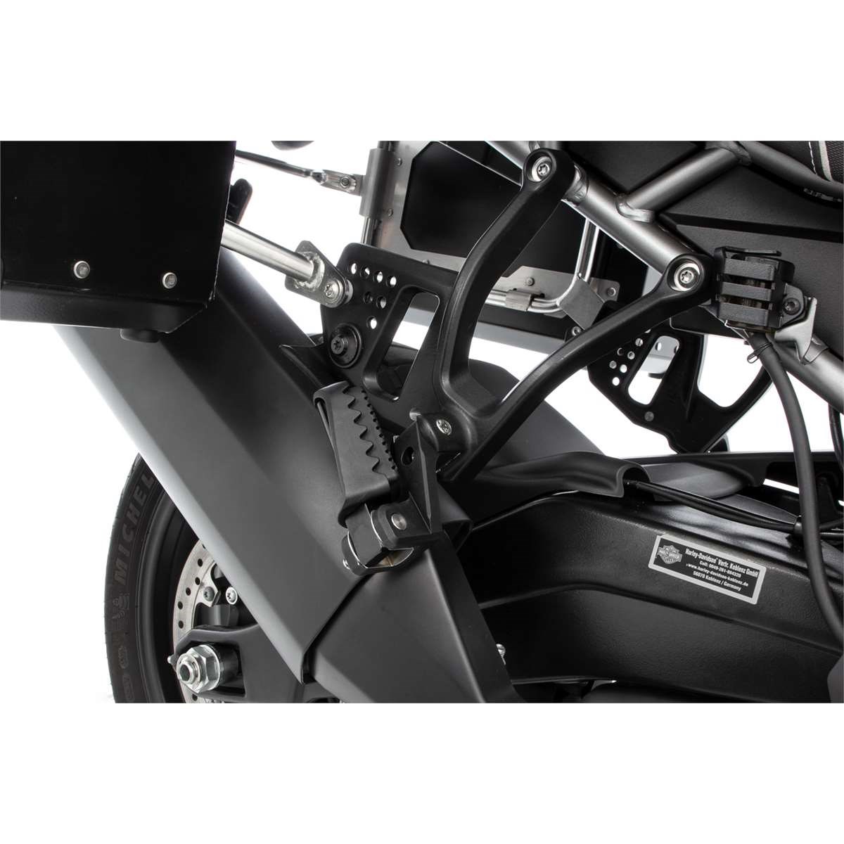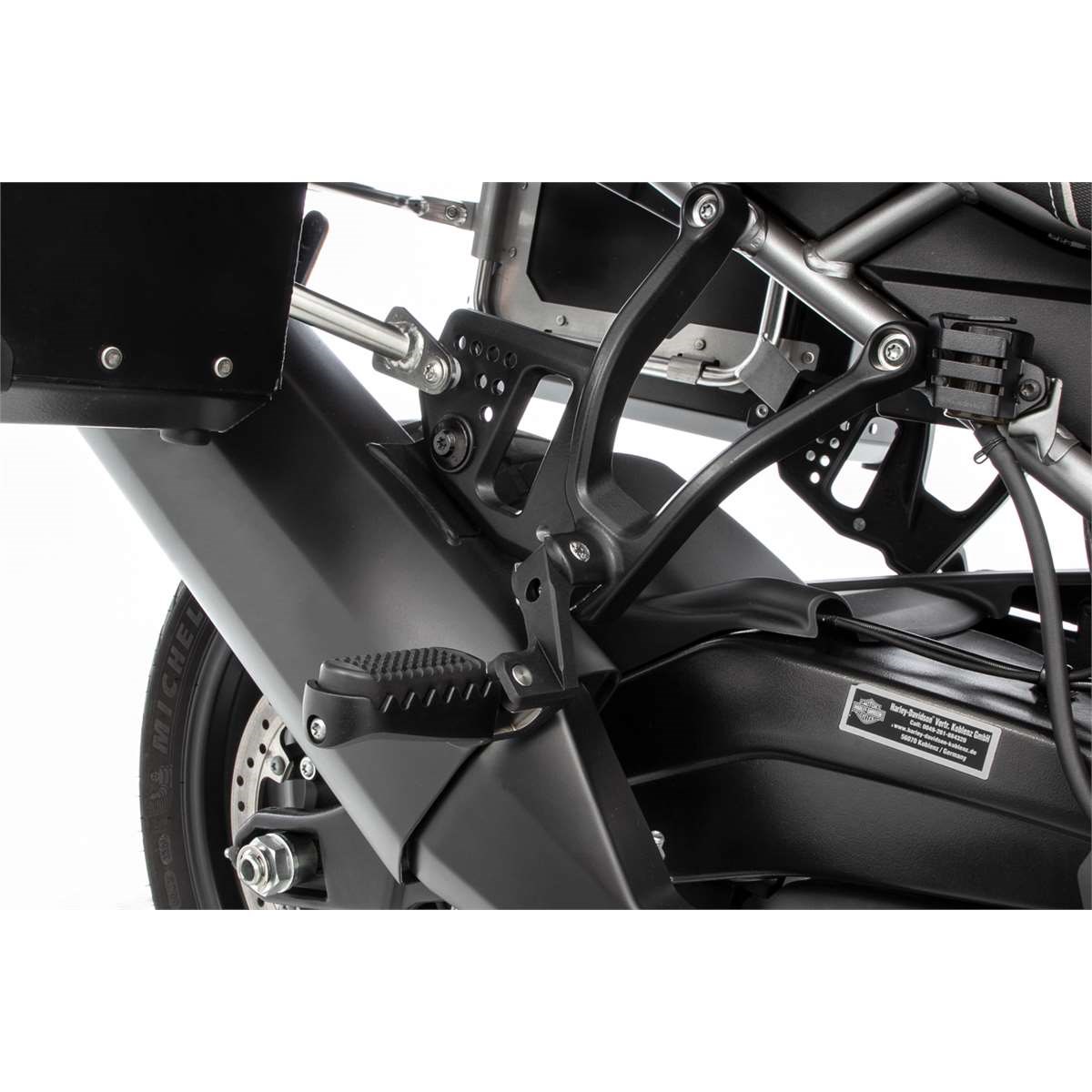Mit unserer Tieferlegung der serienmäßigen Beifahrerfußrasten wandern die Füße deutlich um ca. 45 mm weiter nach unten, der Kniewinkel öffnet sich und wird größer, wodurch eine ausgesprochen entspannte und komfortable Sitzposition entsteht. Damit lassen sich die mit einem engen Kniewinkel u.U. verbundenen schmerzhaften und quälenden Auswirkungen reduzieren, meistens sogar gänzlich vermeiden.