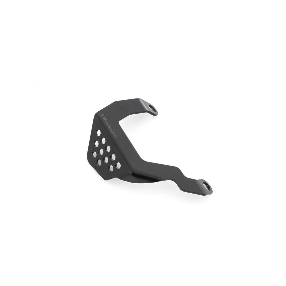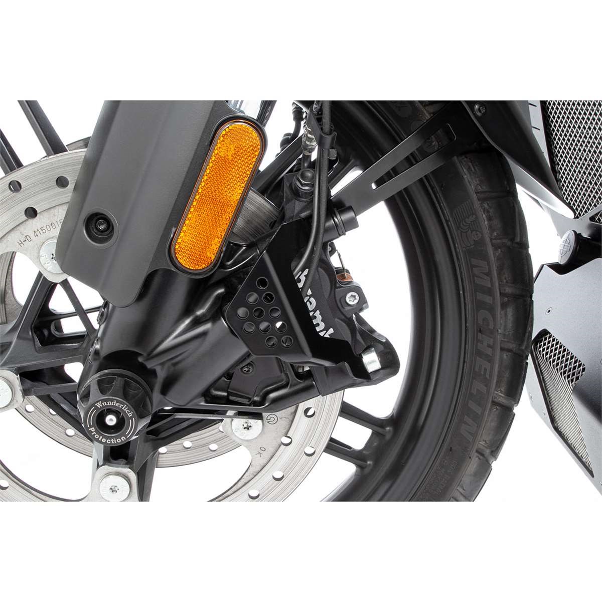 Mit unserem maßgeschneiderten Cover schützen wir das Regelventil zuverlässig und reduzieren die Gefahr der Beschädigung durch Steine, Geäst oder sonstige Fremdkörper, denn ein Ausfall kann unangenehme Folgen nach sich ziehen. Das Schutzcover weist eine solide Materialstärke von 2,5 mm auf. Zur konstruktiven Bauteilsteifigkeit trägt die dreidimensionale Form und die präzise Kantung des hochwertigen Covers aus Edelstahl bei. Die Lochung unterstreicht den Adventure Look und verringert die Masse des Covers. Es wird passgenau und formschlüssig mit dem gut zugänglichen vorderen linken Bremssattel verschraubt – den es zusätzlich schützt - und integriert sich auf diese Weise dezent.