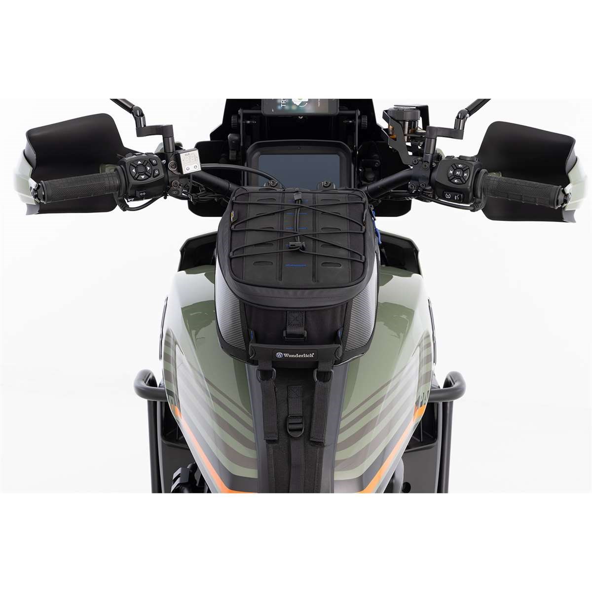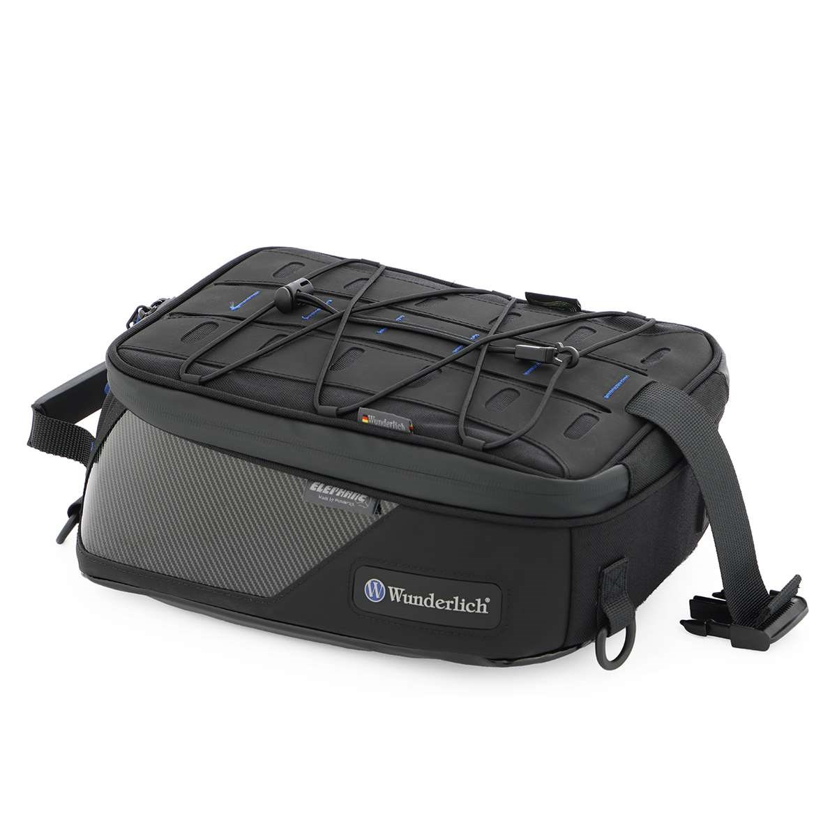 Der ELEPHANT TOUR glänzt als kompakter, hochwertiger Tankrucksack für den alltäglichen Einsatz. Er überzeugt mit gestrafftem Design, nachhaltigen Geweben und Herstellungsverfahren sowie weiter optimierter Funktionalität und Variabilität. Das Hauptfach des aus CORDURA® TrueLock™ gefertigten Tankrucksacks fasst ein Volumen von 10 Litern. Die formstabilisierende Einlage schützt den Inhalt zuverlässig und vermeidet jegliches Ausbeulen oder Flattern bei hohen Geschwindigkeiten. Unser hauseigenes, blaues Futter sorgt für Übersichtlichkeit. Der ELEPHANT bietet ein, dem militärischen Molle-System vergleichbares, Haltesystem und nimmt bei Bedarf zusätzliche Taschen - wie unsere Aufsatztaschen - auf. Es wird durch ein praktisches, elastisches Gepäcknetz ergänzt. Wie üblich sind die Reißverschlüsse wasserabweisend ausgeführt und mit ergonomisch geformten, griffgünstigen Zippern versehen. Auf die wasserabweisende Kabeldurchführung für eine elektrische Versorgung oder das Smartphone Ladekabel muss man genauso wenig verzichten, wie auf das Tragegeschirr, dass den Tankrucksack jenseits des Motorrads zur Umhängetasche verwandelt.