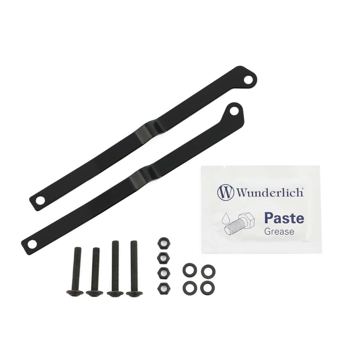 Mit unserer Scheibensicherung, die aus zwei dezenten, schwarz pulverbeschichteten Sicherungsblechen besteht, schlagen wir zwei Fliegen mit einer Klappe: Die beiden präzise hergestellten Sicherungen, verhindern das selbständige Lösen der Scheibe und des Hilfsrahmens von der der Höhenverstellung. Sie lassen sich einfach montieren und sorgen dafür, dass die oberen Halterungen der Serienscheibe dauerhaft gesichert sind, d.h. sie können sich nicht mehr infolge turbulenter Windlasten selbständig und unbemerkt lösen. Sie reduzieren darüber hinaus auch das Risiko des Diebstahls, denn die Scheibe lässt sich erst ausbauen, nachdem die Sicherungsbleche entfernt wurden. Und dazu ist Werkzeug notwendig.