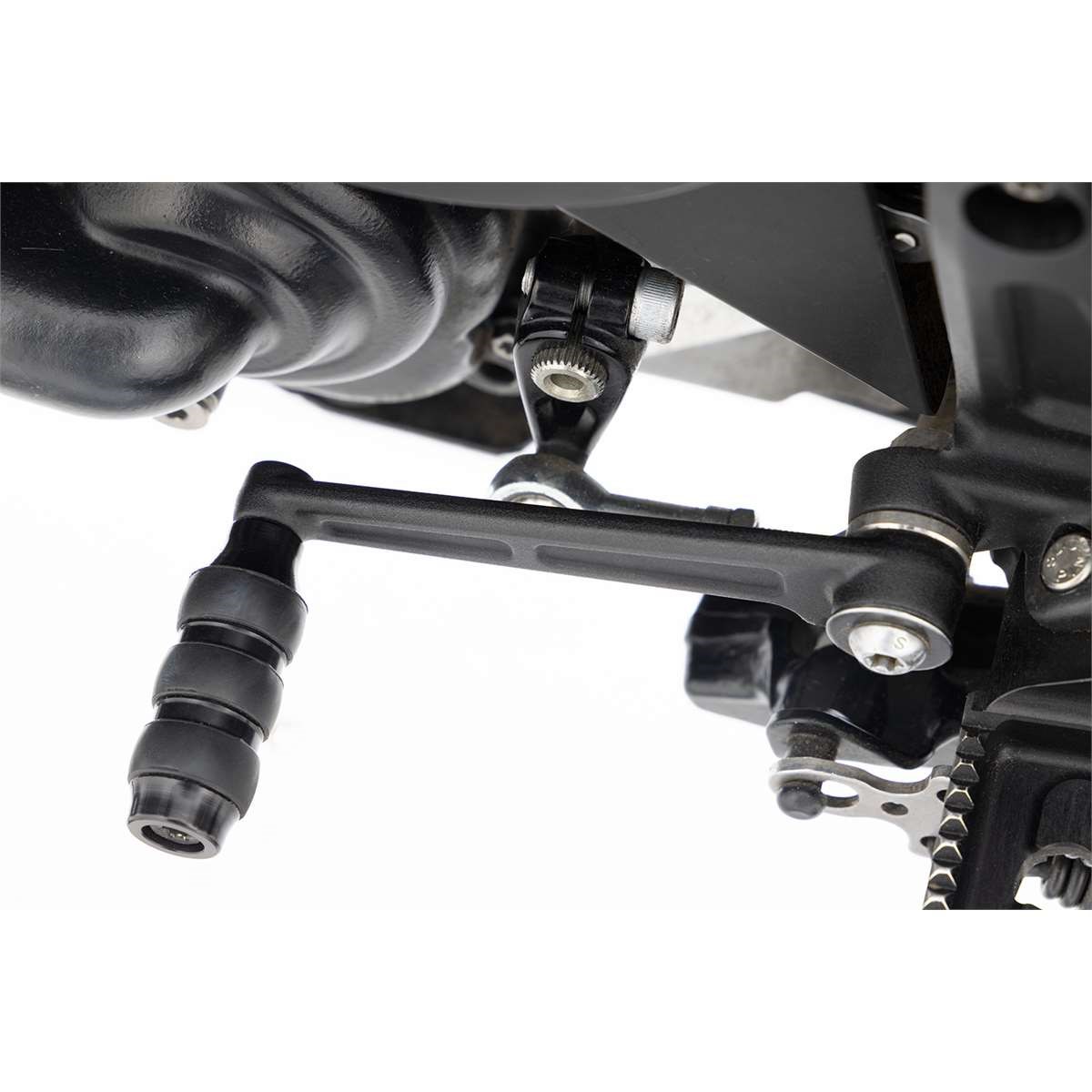 Die drei ringförmig integrierten Gummisegmente bieten besten Grip beim Schaltvorgang und schonen gleichzeitig die Motorradstiefel oder -schuhe.