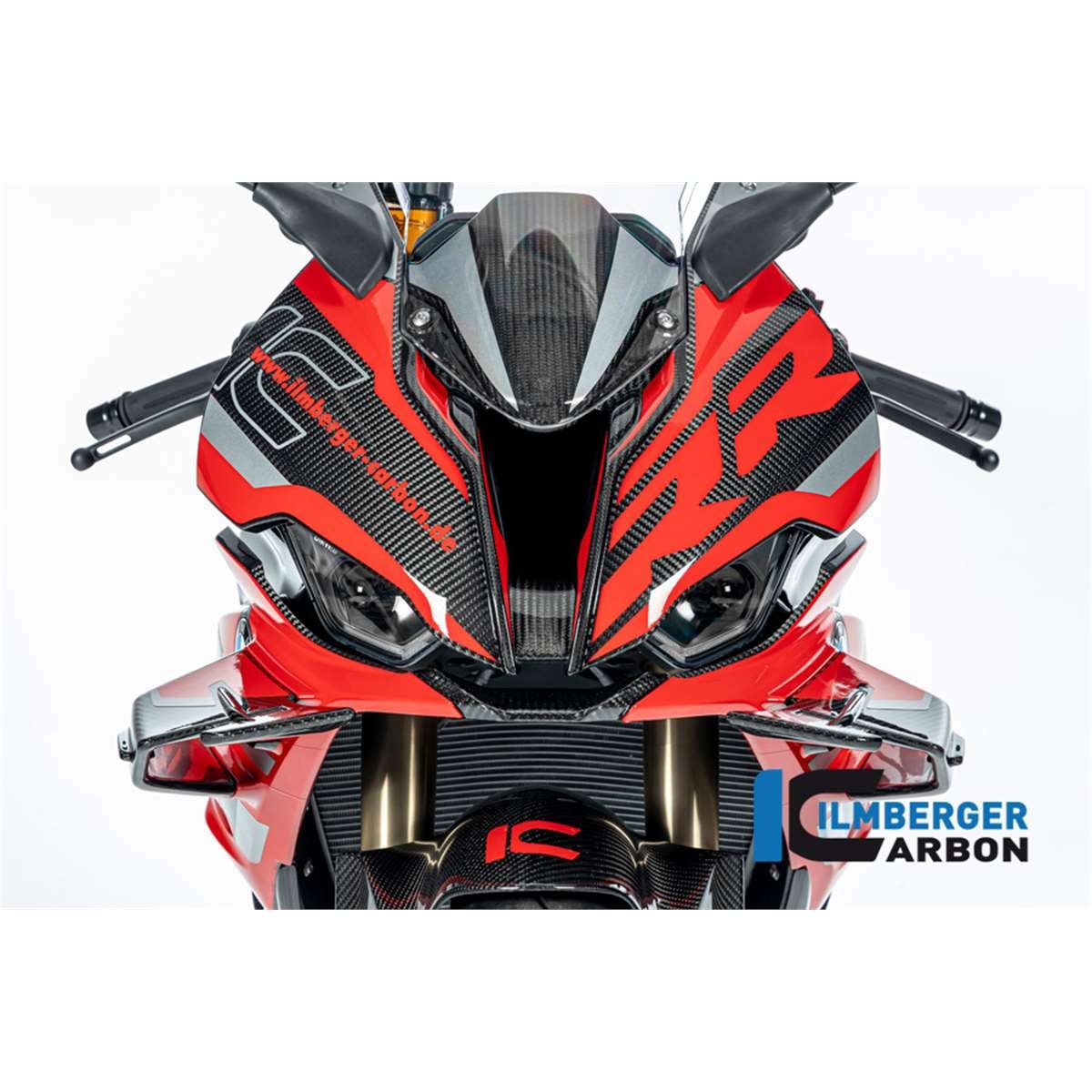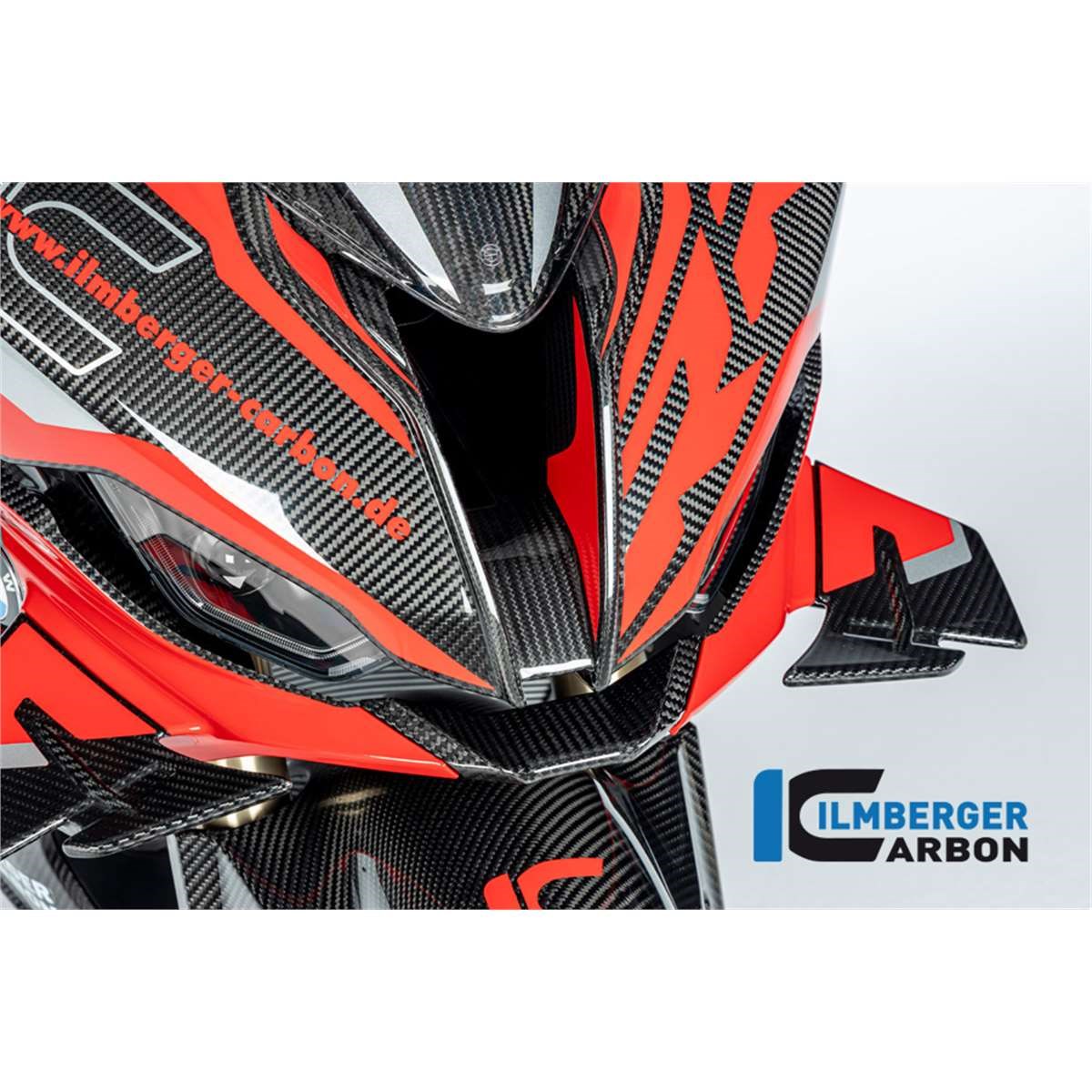 Das markante Mittelteil der neuen Verkleidung für die neue BMW S 1000 RR ab 2023 wertet die Optik des Motorrad nochmals deutlich auf. Es verbindet das linke Seitenteil mit dem rechten Seitenteil und vollendet damit die Verkleidung. Der unverkennbare Look von echtem Carbon mit hochwertiger Versiegelung betont diese Innovation nochmals.