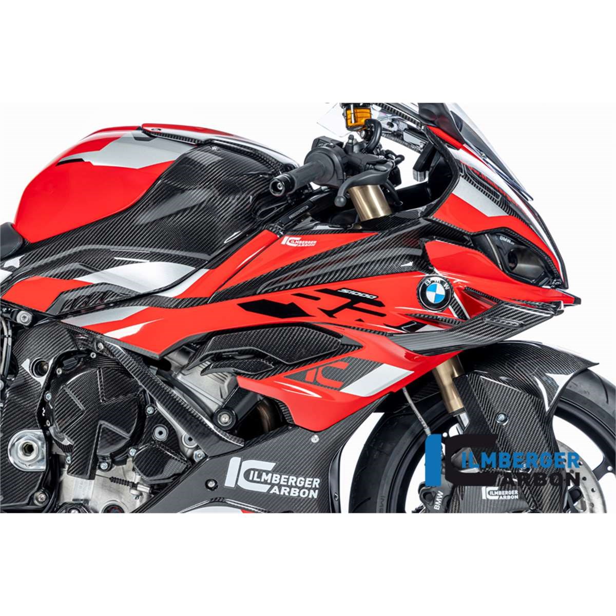 Das Verkleidungsseitenteil auf der rechten Seite für die BMW S 1000 RR ab 2023 verbindet modernes Design mit sportlicher Funktion. Das Seitenteil ist mit dem neuen Winglet kompatibel. Das geringere Gewicht verbessert das Handling und der unverkennbare Look von echtem Carbon mit hochwertiger Versiegelung geben dem Motorrad ein noch sportlicheres Aussehen.