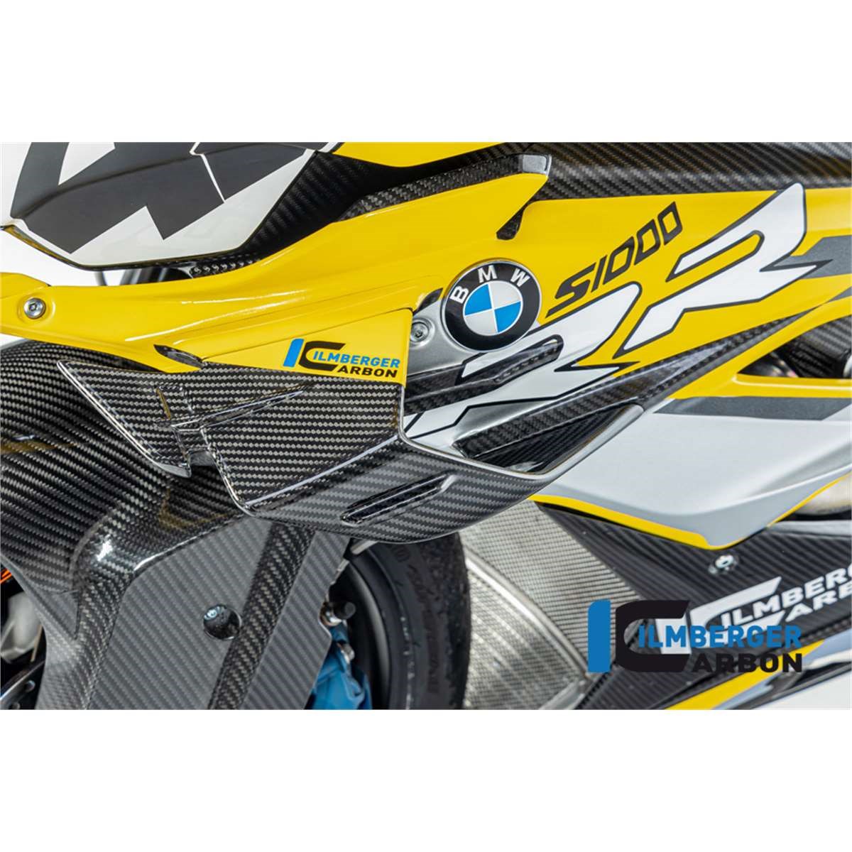 Die Flügel für die BMW S1000RR 2023 bringen die aerodynamischen Vorteile auf Straße und Rennstrecke gleichermaßen. Das neue Design verbindet sportlich modernen Look mit den positiven von der M1000RR bereits bekannten, Effekten auf das Fahrverhalten. Der linke Flügel kann nicht nur mit dem originalen Seitenteil, sondern auch mit dem Ilmberger Carbon Straßen und Racing Seitenteil kombiniert werden