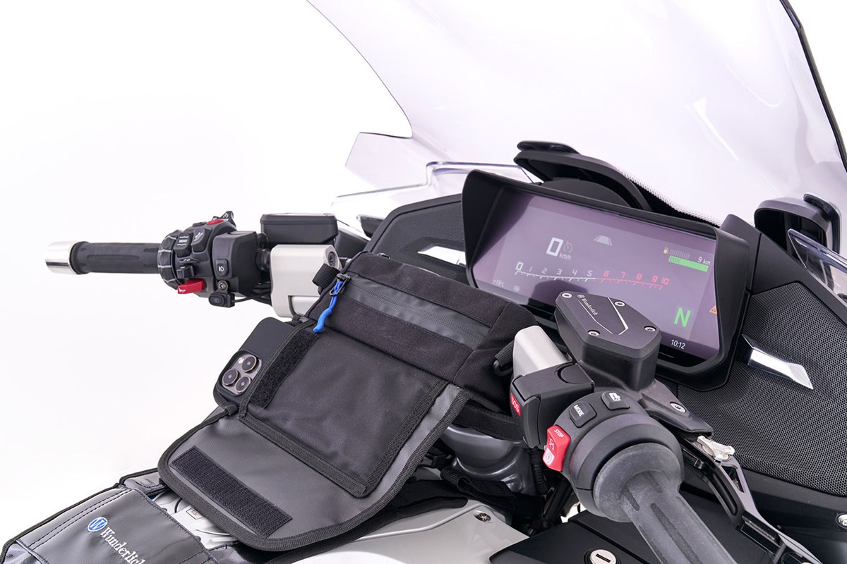 Für alles, was unterwegs schnell zur Hand sein muss, aber auch bestens geschützt sein sollte. Unsere funktionelle Lenkertasche ist speziell für die BMW-Modelle entwickelt worden, sie ist am neuen, gestrafften, funktionalen Design, mit dezenten blauen Applikationen erkennbar. Sie wird mit zwei Klettschlaufen am Lenker befestigt. So kann der komplette, zur Verfügung stehende Raum optimal genutzt werden.