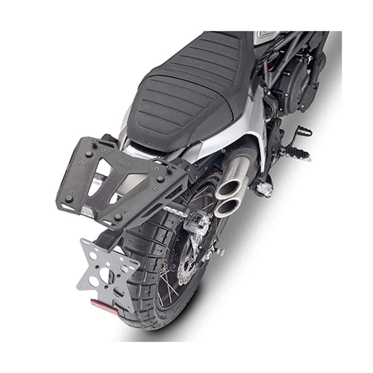 zu montieren mit der MONOKEY® Platte M5, M7, M8A, M8B, M9A, M9B oder der MONOLOCK® Platte M5M und M6M oder dem Gepäckträger aus eloxiertem Aluminium EX2M / mit M8A, M8B, M9A und M9B ist eine Montage der Bremslichter und/oder der Fernbedienung nicht möglich