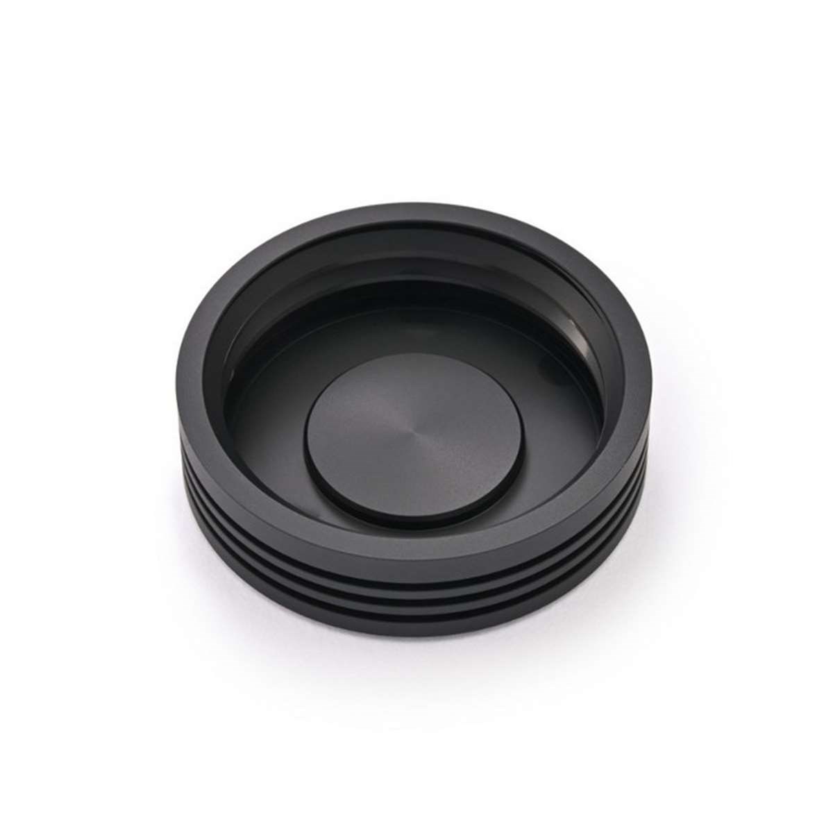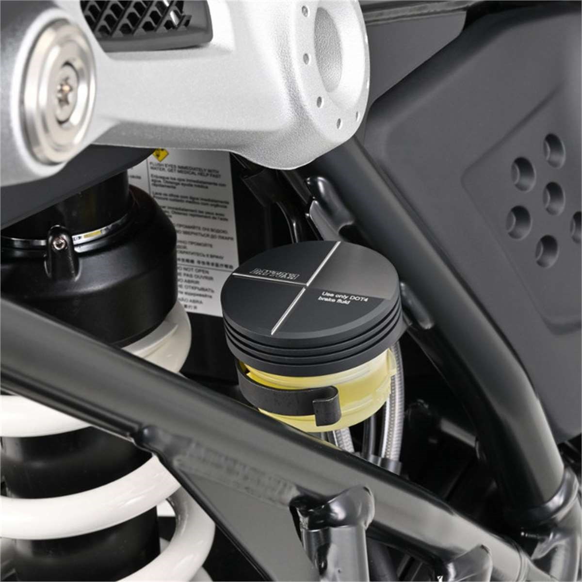 CNC-gefräster Aluminium Deckel für das hintere Brems-Ausgleichgefäss in schwarz und gun-metal grau 2-farbig eloxiert. Die originale Membran wird weiterverwendet.