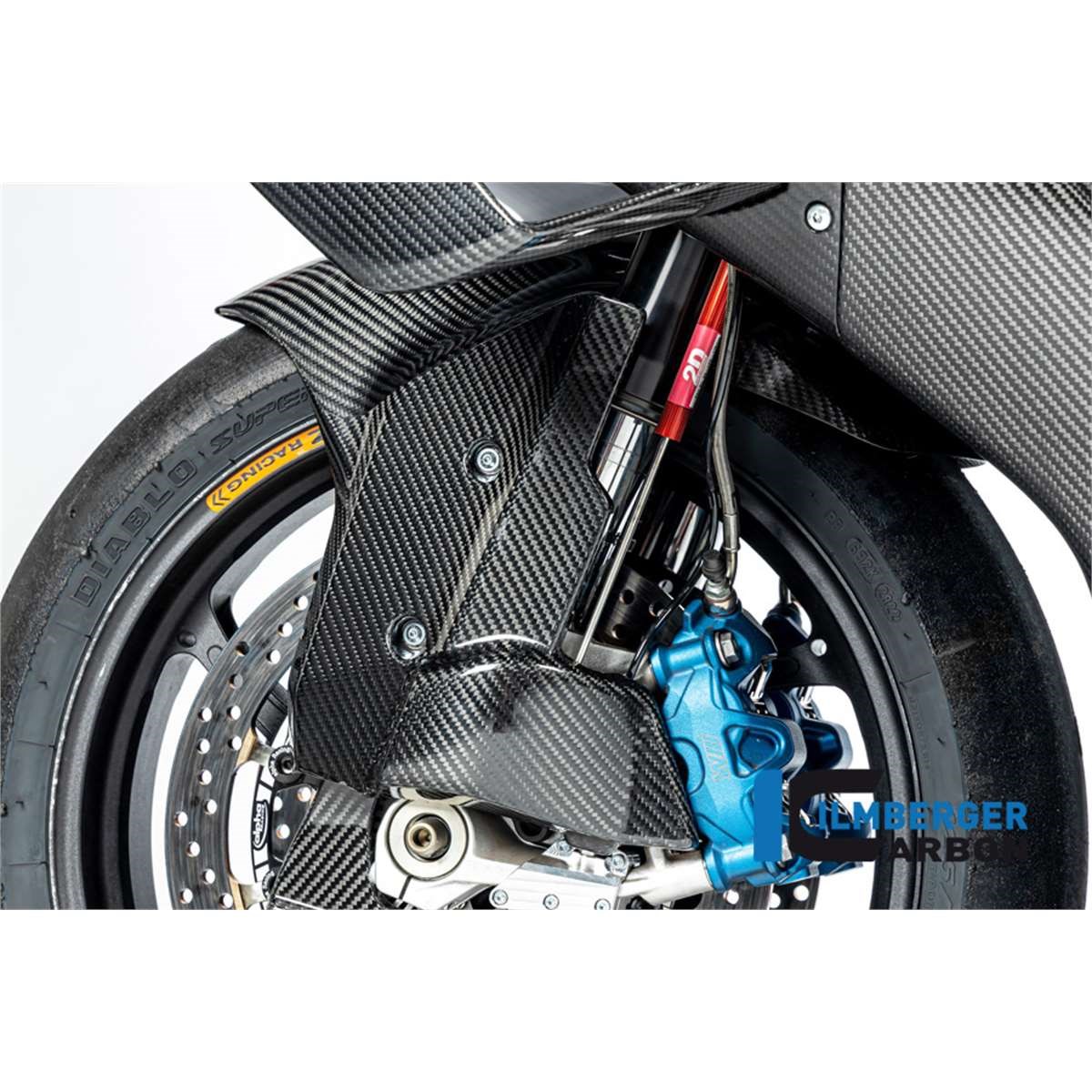 Der Kotflügel der M1000RR ist viel mehr als nur ein Kotflügel. Er vereint elegant die Funktion von bisher drei Bauteilen in einem Einzigen. Die integrierten Luftkanäle führen während der Fahrt konstant frische Luft zu den Bremssätteln, um die Gefahr des Bremsfadings zu vermindern. Getestet unter den härtesten Bedingungen verhilft er in den verschiedensten Rennserien der Welt zum Erfolg. So konnte er bei den legendären 24h von LeMans dem Tecmas Stock Team 2023 zu einem souveränen Sieg verhelfen.