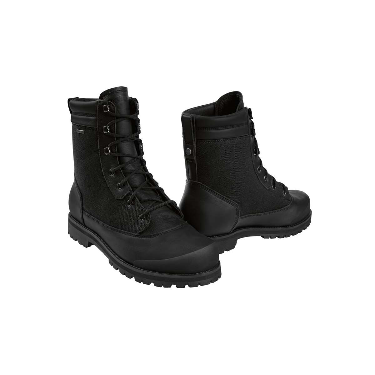 Die robusten Schnürstiefel Treptow GORE-TEX begeistern durch hohe Funktionalität und klassische Optik. Schon das Hineingleiten gelingt dank der eingenähten Zugschlaufe am Schaftende besonders leicht. Dank GORE-TEX Membran und einem Leder-/Canvas-Mix sind die Stiefel wind- und wasserdicht. Auch die Sicherheit kommt nicht zu kurz. Neben NP-Flex-Knöchelprotektoren sind die Schnürstiefel mit stabilen Zehen- und Fersenkappen und einer Schaltverstärkung ausgestattet. Ein spezielles Innenfutter gleicht zudem Temperaturschwankungen optimal aus. Für perfekten Halt auf den Rasten sorgt der halbhohe Schaft und die profilierte Vibram Laufsohle. Sie ist öl- und benzinresistent und bietet auch zu Fuß jede Menge Grip und Komfort. Mit ihrem klassischen Finish machen die Schnürstiefel Treptow GORE-TEX aber nicht nur auf dem Bike eine gute Figur, sondern lassen sich auch hervorragend mit Jeans und Lederjacke kombinieren.