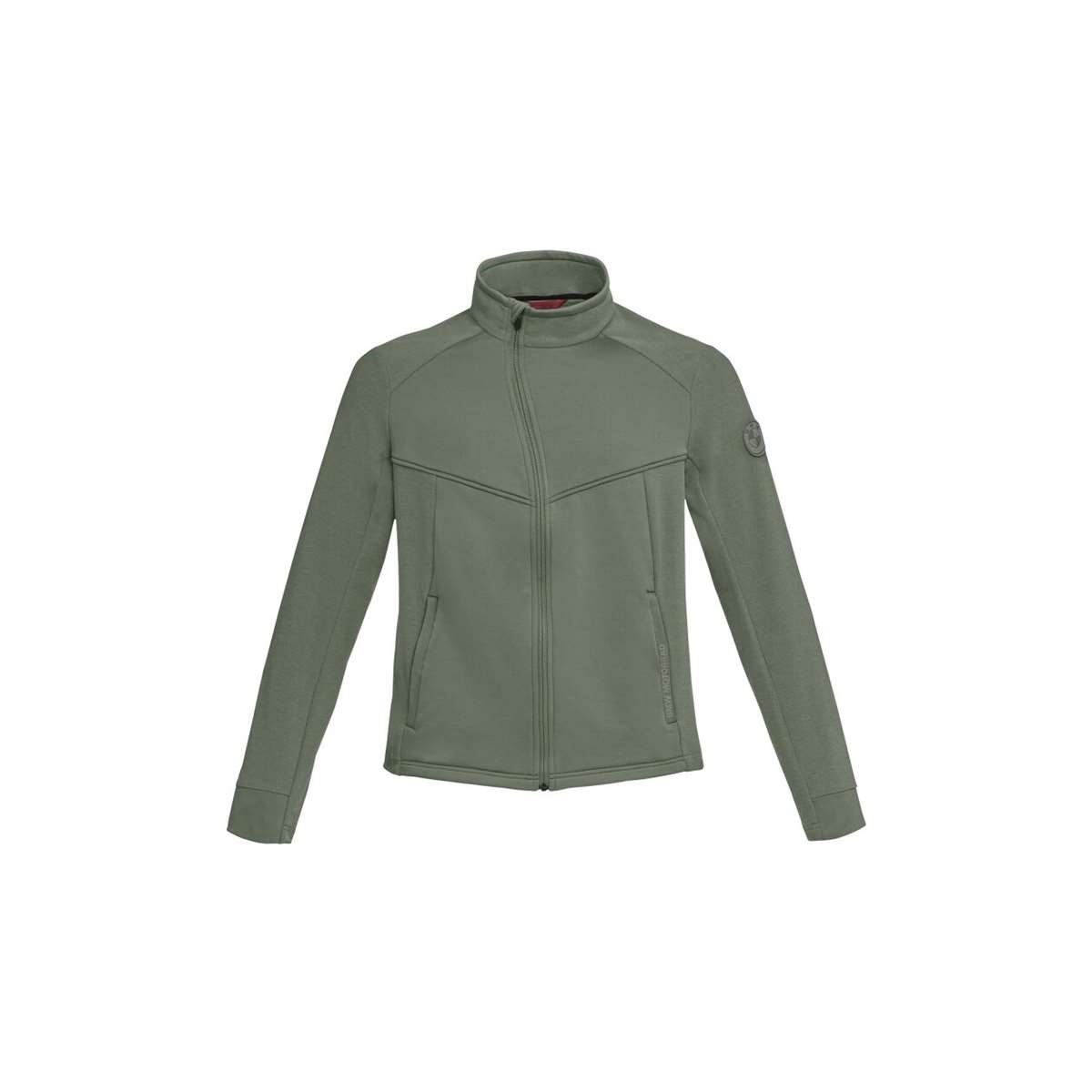 Leichte, winddichte Fleecejacke mit schrägem Reißverschluss vorn und BMW Motorrad Schriftzügen.