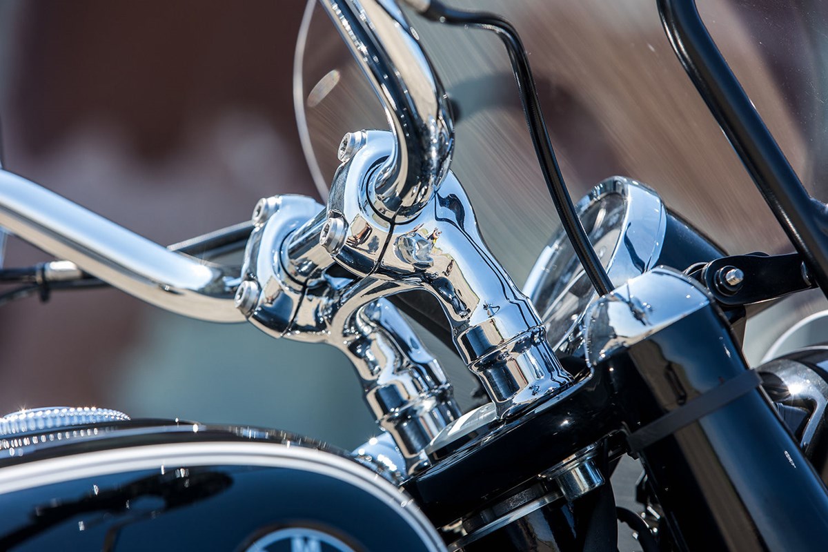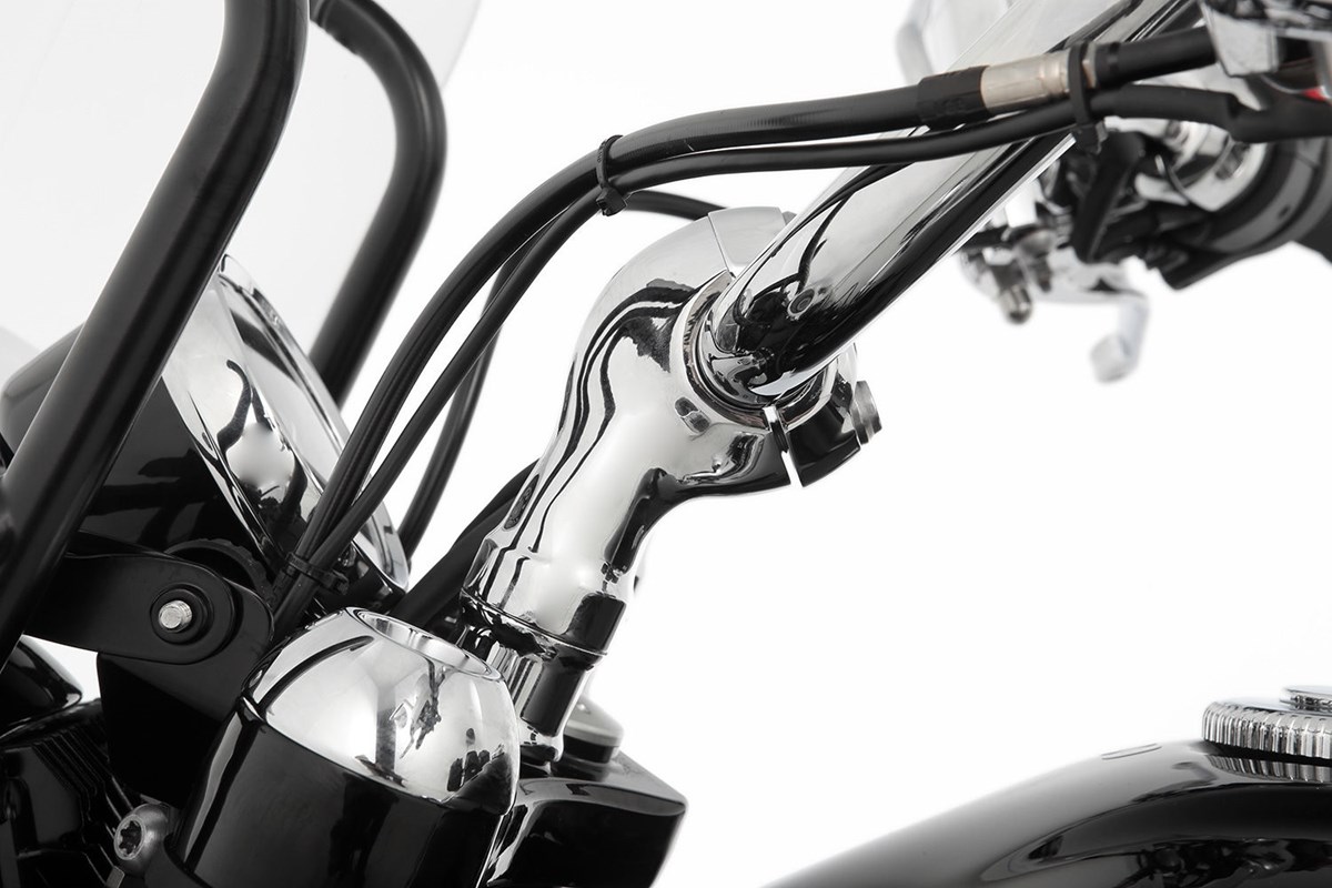 Das Design unserer Lenkererhöhung, die wir aus Aluminium fertigen, fügt sich harmonisch im Bereich der oberen Gabelbrücke ein. Zum Blickfang wird sie durch das feine Finish der hochwertigen Verchromung.