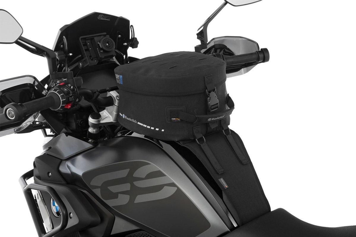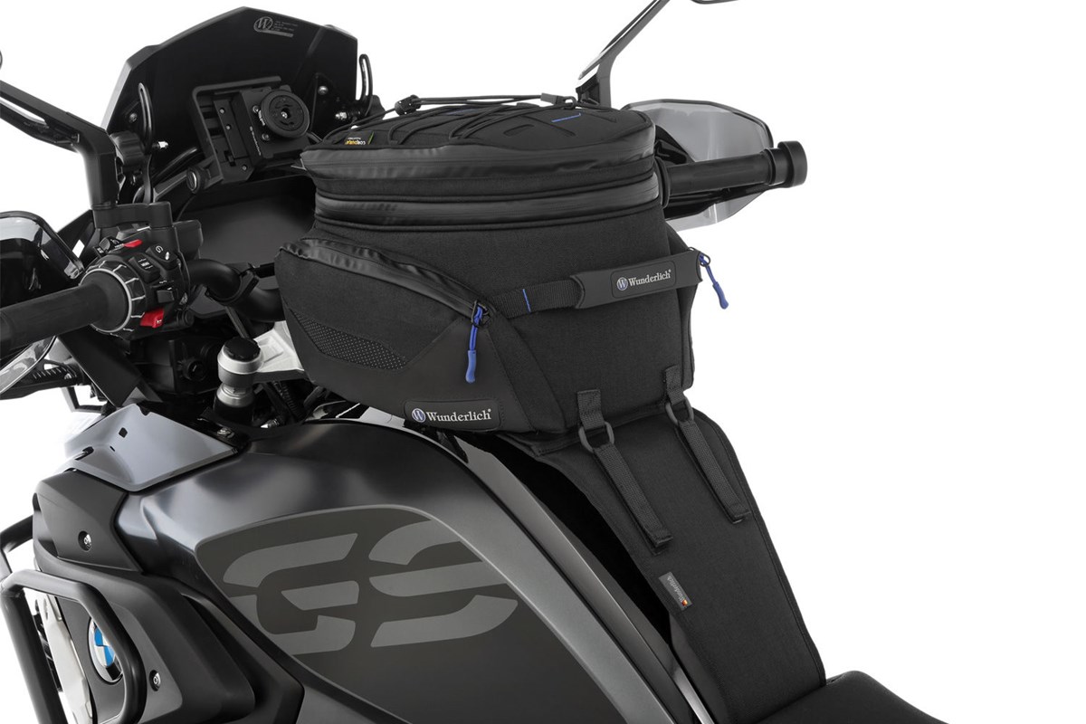 Die Systemhalterung wird mit wenigen Handgriffen am Fahrzeug befestigt und nimmt den Tankrucksack per Schnellbefestigung auf. Einfach die Haltezunge des Tankrucksacks durch die Aufnahme an der Halterung schieben und vorne verschließen. Eine einfache und deshalb geniale Schnellbefestigung, die auch mit Handschuhen und klammen Fingern ein sekundenschnelles An- und Abbauen ermöglicht: