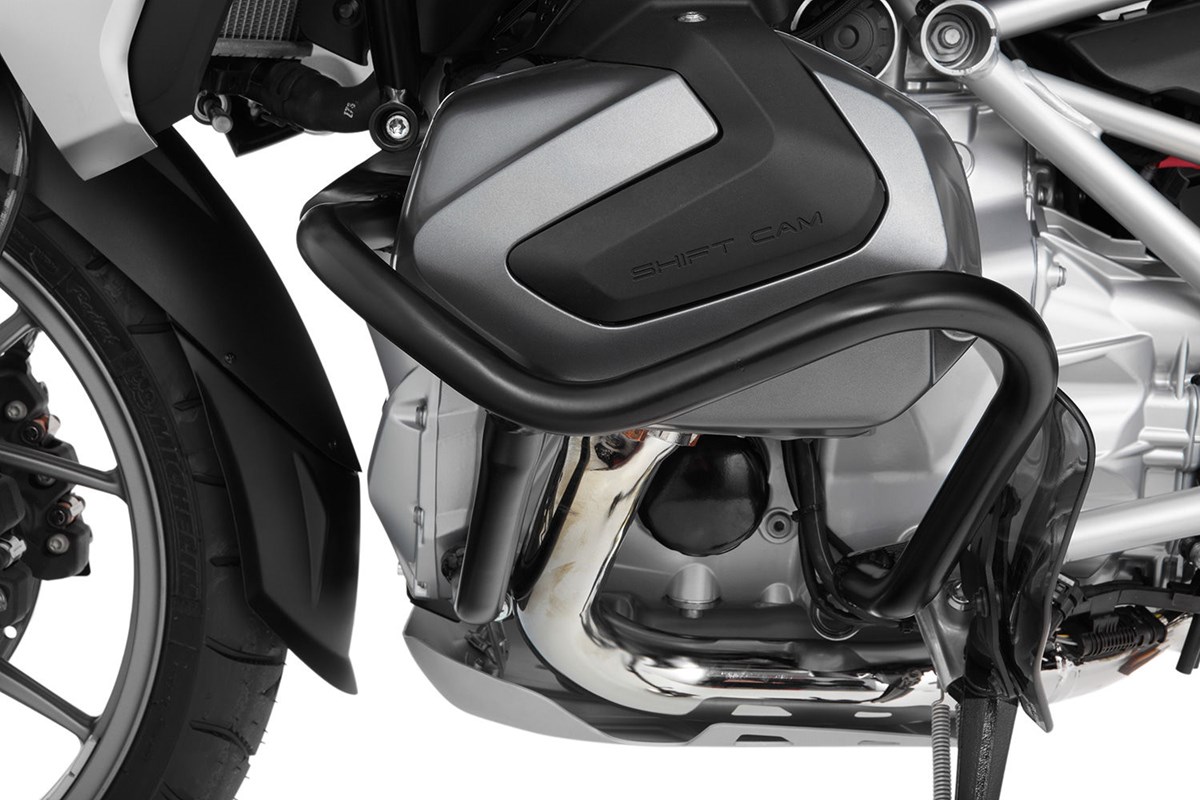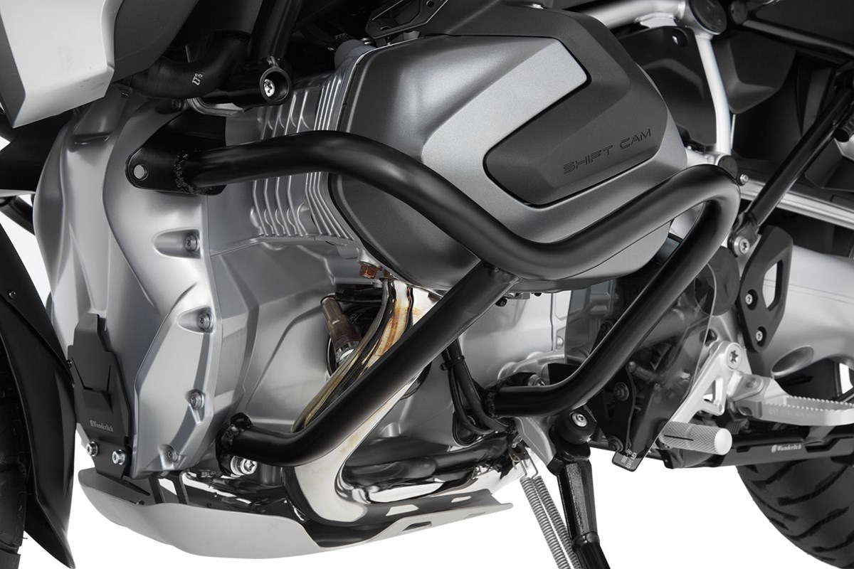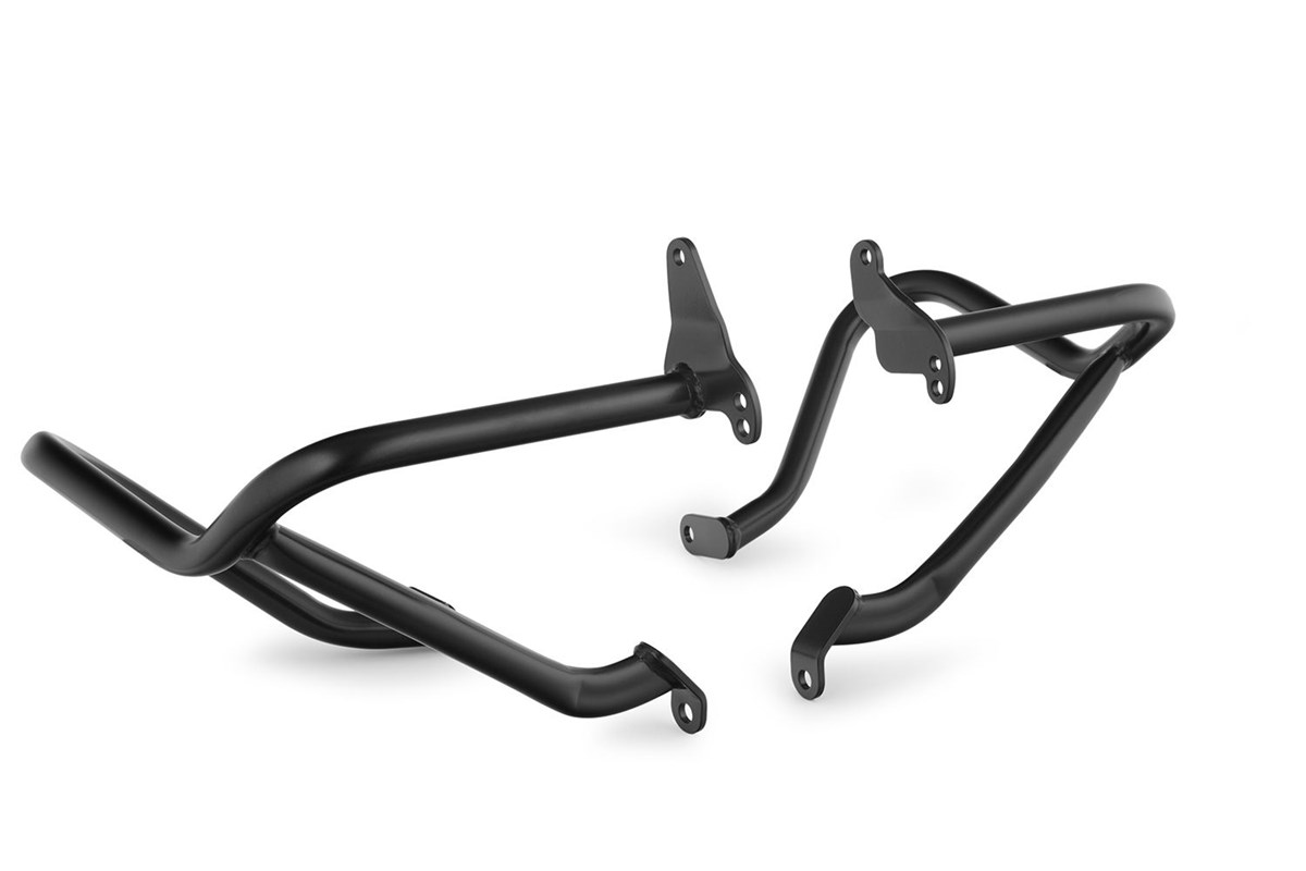 Der Motorschutzbügel schützt nicht nur zuverlässig die Zylinder und Ventildeckel, sondern auch die beiden Lambdasonden. Das Rundumschutzkonzept erhöht die passive Sicherheit und damit die Freude beim Fahren. Im Falle eines Sturzes oder Umfallers werden die wirkenden Kräfte optimal über die Schutzbügelstruktur auf die belastbaren Aufnahmepunkte verteilt, sodass Kraft- und Momentspitzen vermieden werden.