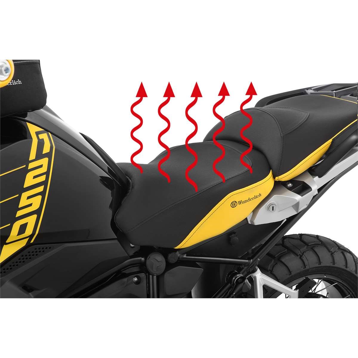 Sie bieten perfekten Halt und aktive, sichere Kontrolle bei forcierter Fahrt, ganz besonders auch beim Bremsen: Wer kennt das nicht, wenn die Sozia beim Ankern plötzlich von hinten schiebt und man sich unvermittelt abstützen und gleichzeitig, in einer vielleicht brenzligen Lage, auch noch lenken muss. Mit Wunderlichs eigens entwickelter Stützkontur gehören diese Schreckmomente beim Bremsen der Vergangenheit an. Die innovative, ergonomische 3-D-Kontur sorgt auch dafür, dass Druckstellen an den Innenschenkeln beim Stehen an der Ampel, passé sind.