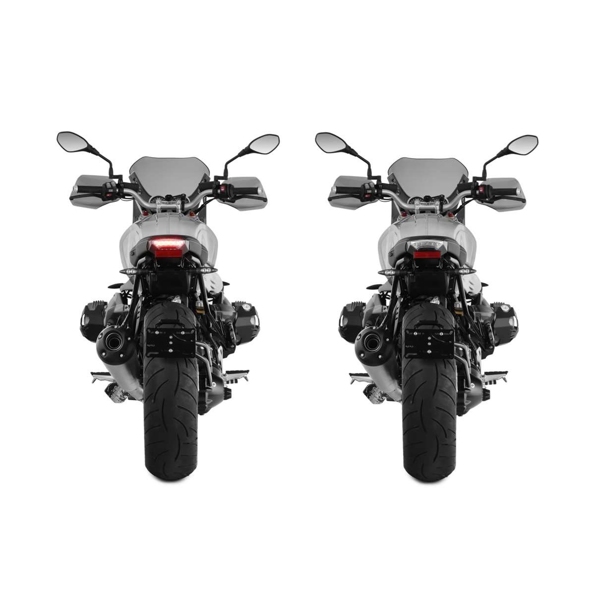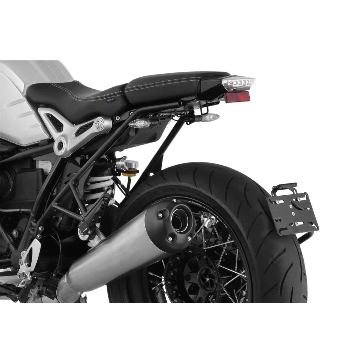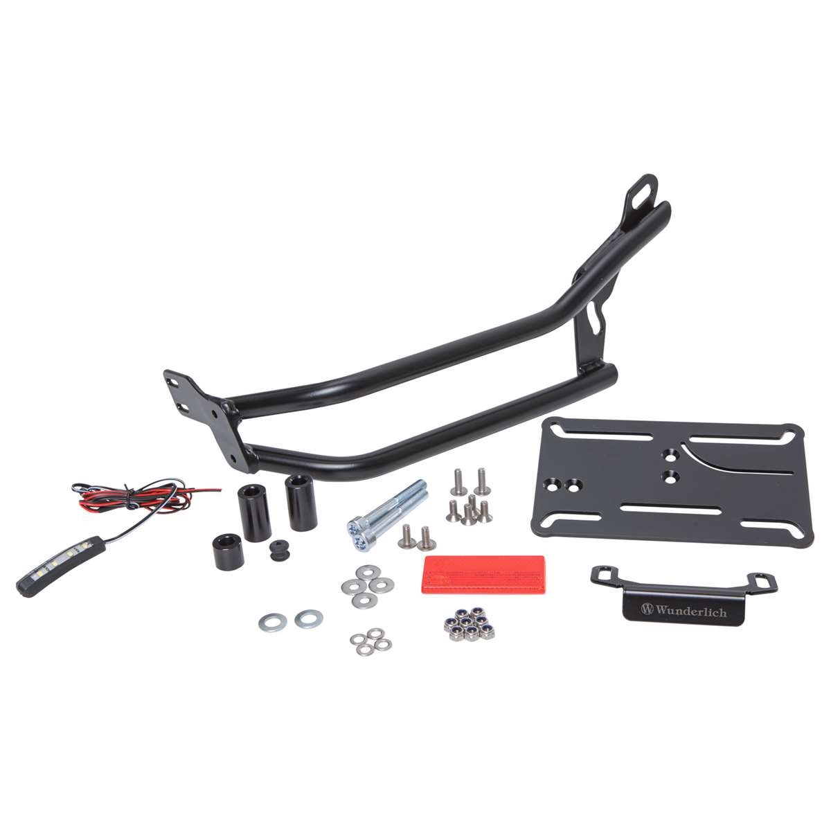 Lieferumfang: Grundhalter unter der Sitzbank mit drei möglichen Blinkerpositionen (zur Fahrzeugachse und in der Breite einstellbar), Nummernschildhalter, LED-Nummernschildbeleuchtung, Katzenauge/ -Träger und kompletter Einbausatz.